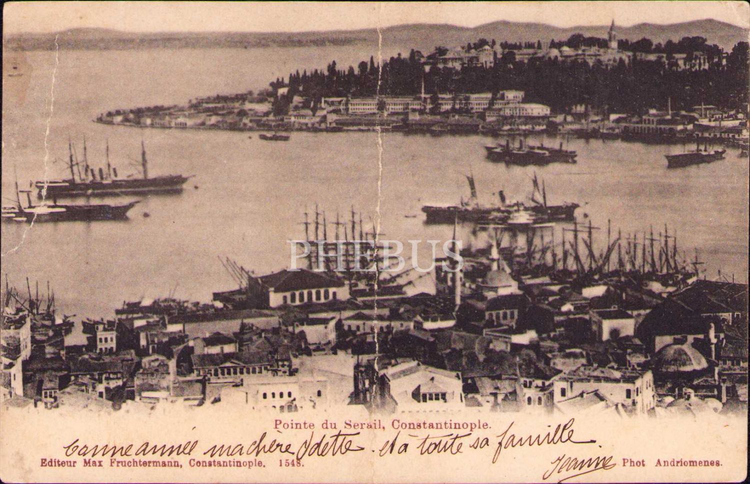 Sarayburnu manzarası, Constantinople, ed. Max Fruchtermann, ortadan kırık ve yıpranmış haliyle