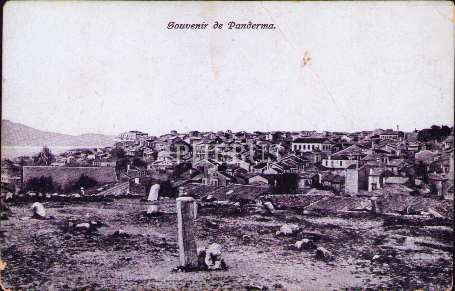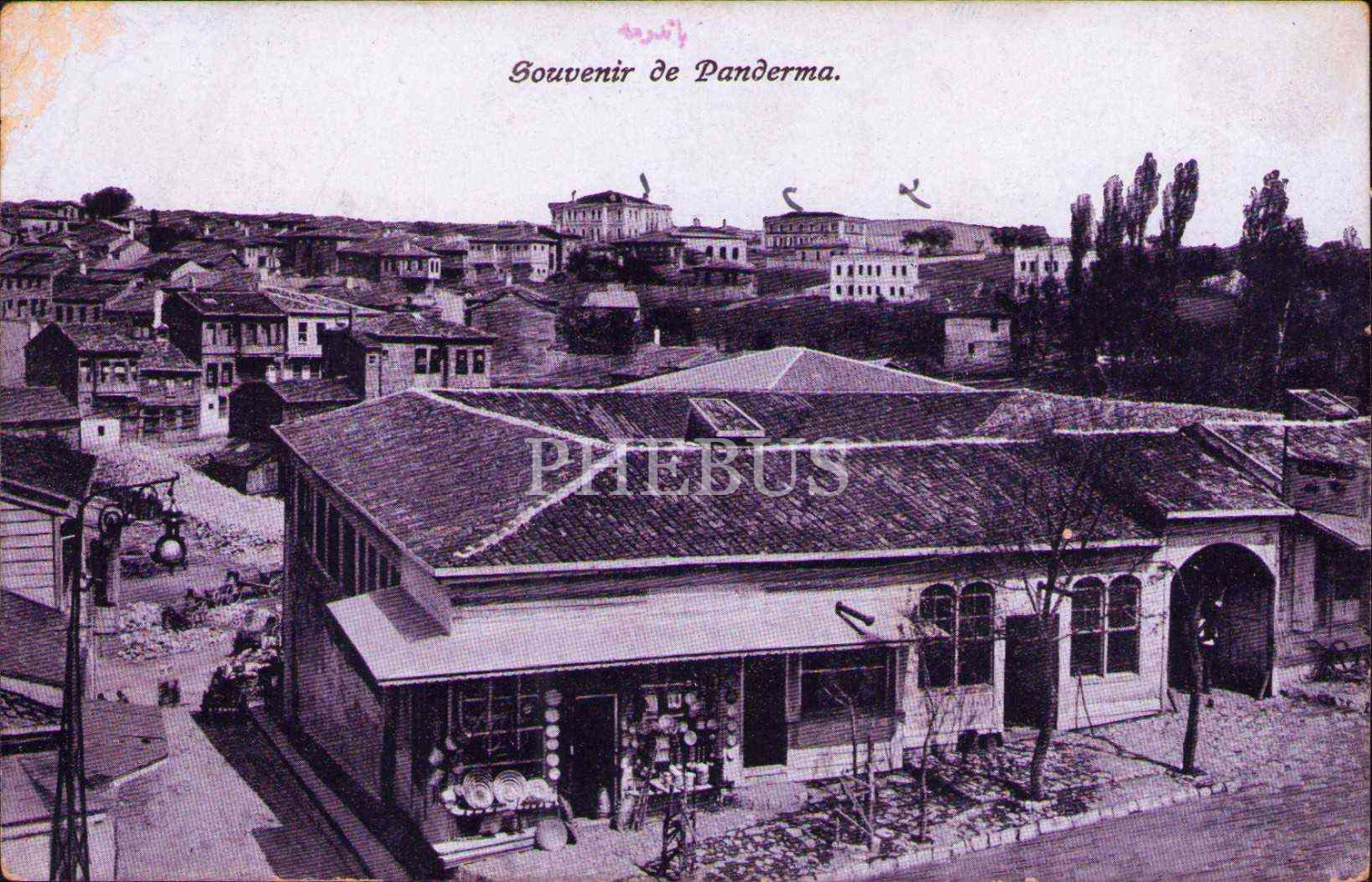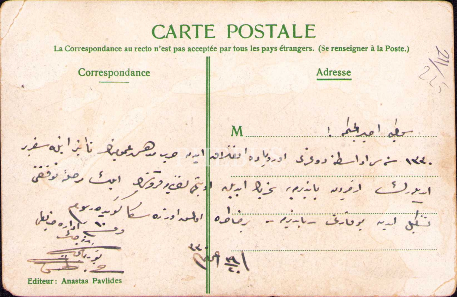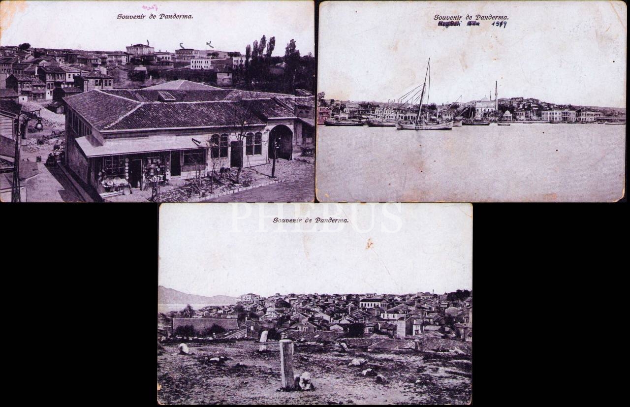 Üç adet Bandırma manzarası, ed. Anastas Pavlides, arkaları Osmanlıca yazılı, yıpranmış haliyle