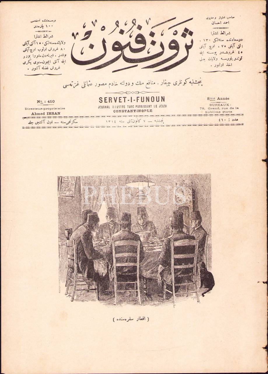 Osmanlıca Servet-i Fünun dergisi 410. sayı, 7 Kanunusani 1314, "İftar Sofrasında" başlıklı kapak görseliyle, 22x31 cm, sırtı yıpranmış haliyle