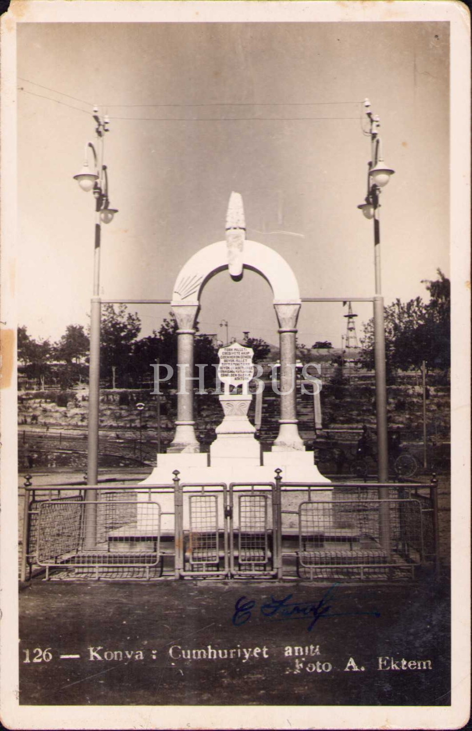 Konya Cumhuriyet Anıtı, Foto A. Ektem, arkası yazılı, hafif yıpranmış haliyle