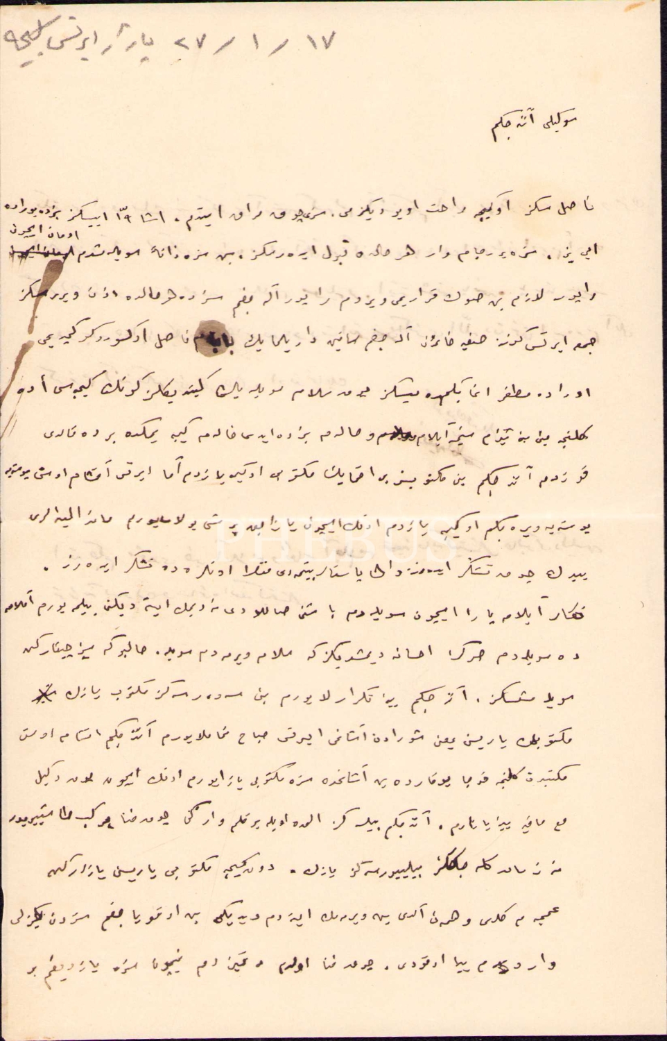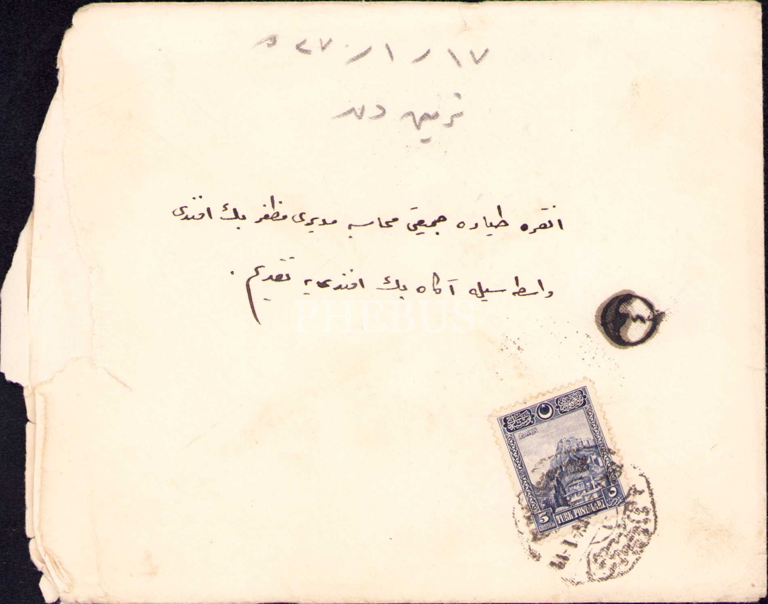 Osmanlıca 1327 tarihli şahsi mektup ve zarfı, 14x21 cm, zarf yıpranmış haliyle