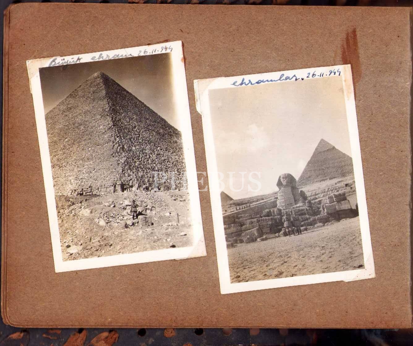 Mısır, Beyrut ve Gazze'de çekilen ve 10 tanesi dergiden çıkma olmak üzere 66 adet fotoğraf içeren albüm, 1944 tarihli, her bir foto: 6x9 cm, albüm yıpranmış haliyle