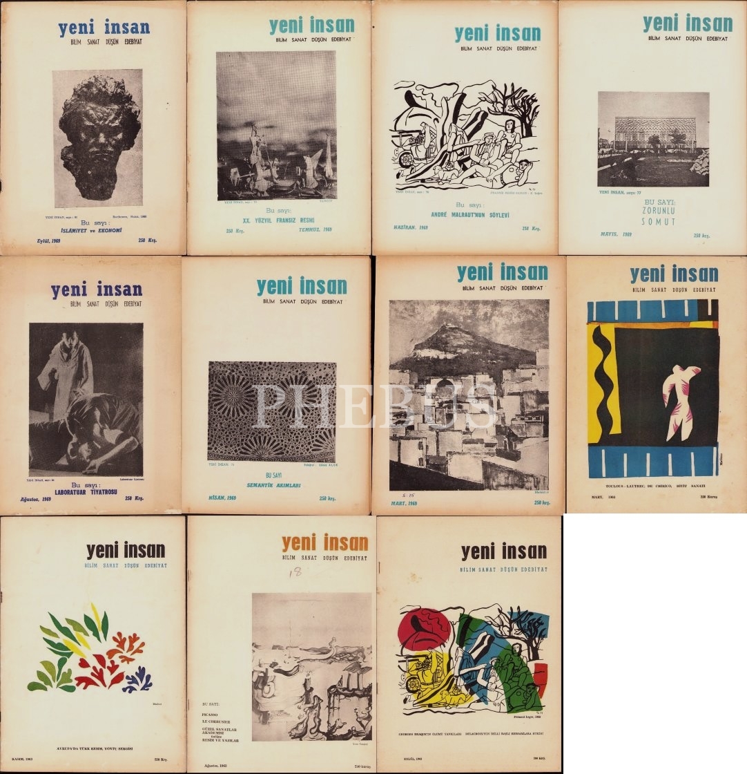 1963, 1964 ve 1969 yıllarına ait 11 adet Yeni İnsan dergisi, 24x33 cm, kapağı yorgun haliyle