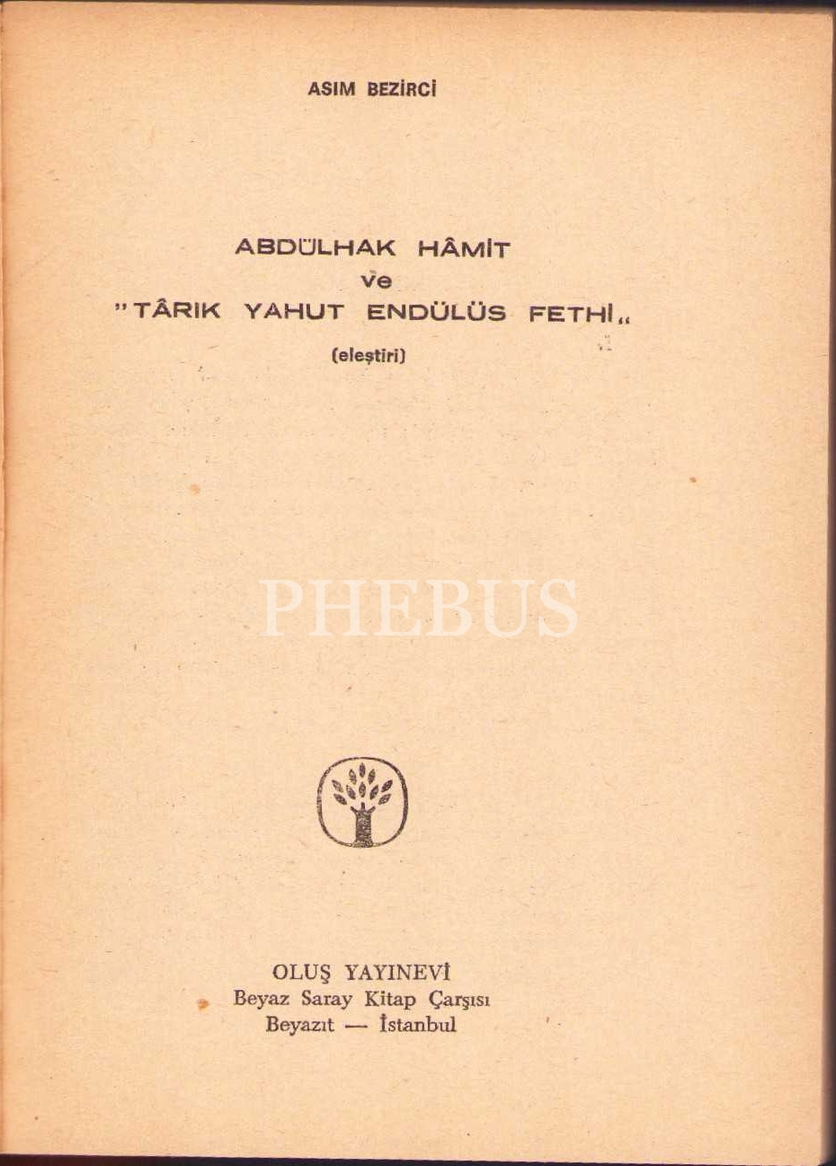 Abdülhak Hâmit ve Târık Yahut Endülüs Fethi [Eleştiri], Asım Bezirci, ithaf ve imzalı, Oluş Yayınları, İstanbul, 112 s., 12x16 cm