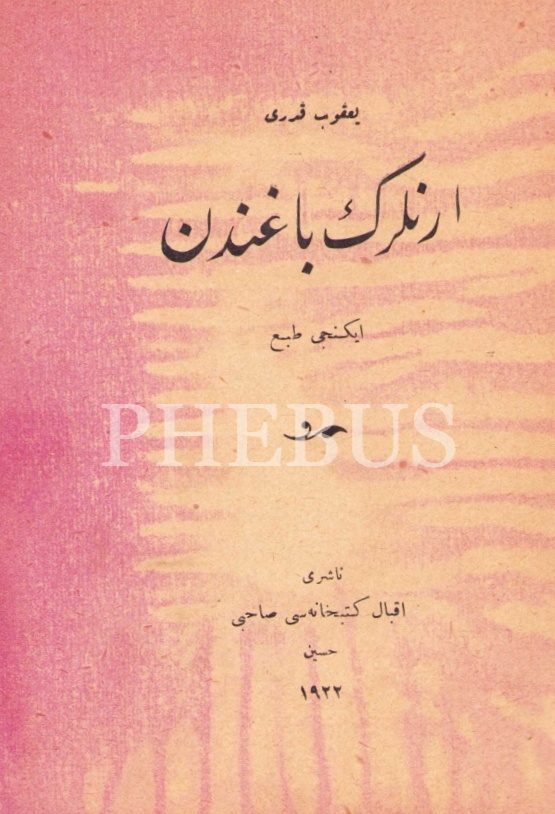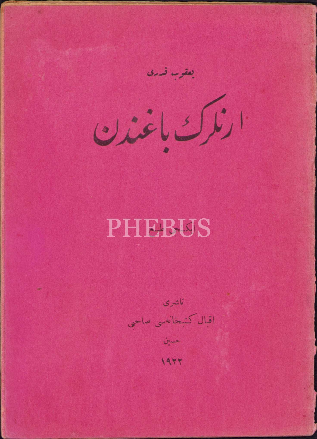 Osmanlıca Erenlerin Bağından, Yakub Kadri [Karaosmanoğlu], Orhaniye Matbaası, 1922, 46 s., 12x17 cm, arka kapak sayfası kopuk haliyle
