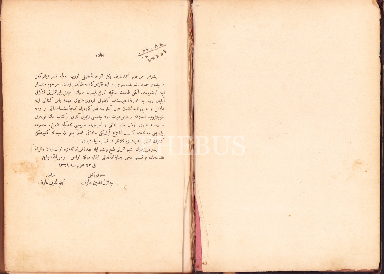 Osmanlıca Başımıza Gelenler, Mehmed Arif, Maarif Matbaası, Mısır 1321, 534 s., 16x23 cm, cildi ve ayrık olan bazı sayfaları yıpranmış haliyle