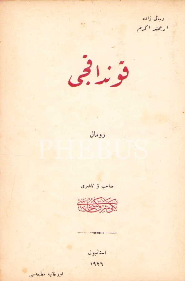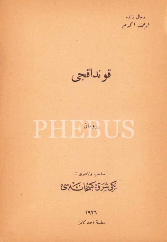 Osmanlıca Kundakcı, Recaizade Ercümend Ekrem, Ahmed Kamil Matbaası, İstanbul 1926, 180 s., 13x19 cm, sırtı ayrık haliyle