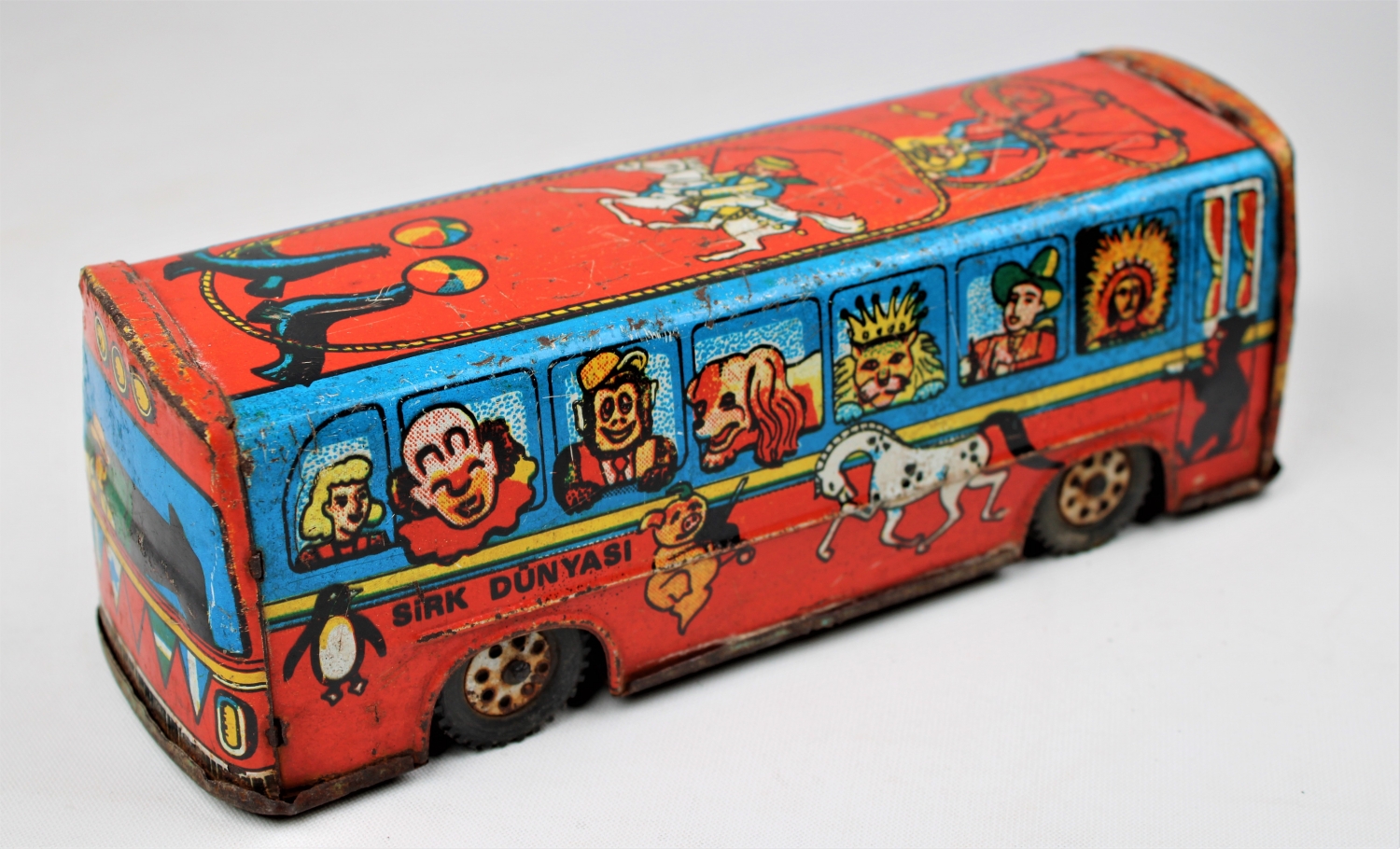 Gürel marka teneke oyuncak Sirk Otobüsü, Türk malı, 20x6x6
