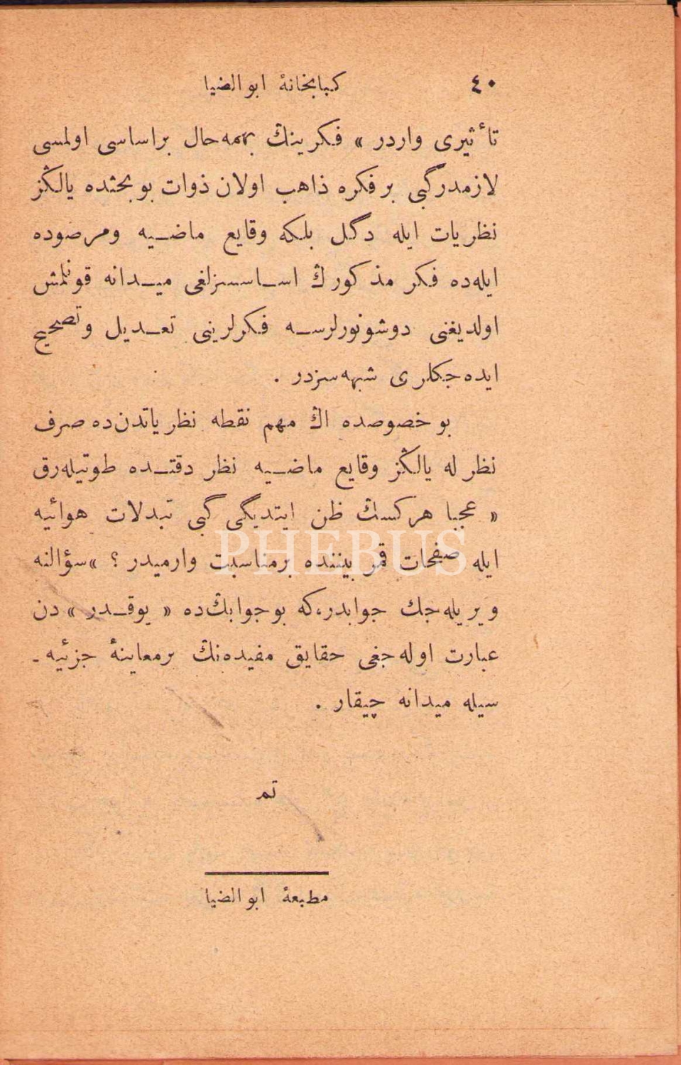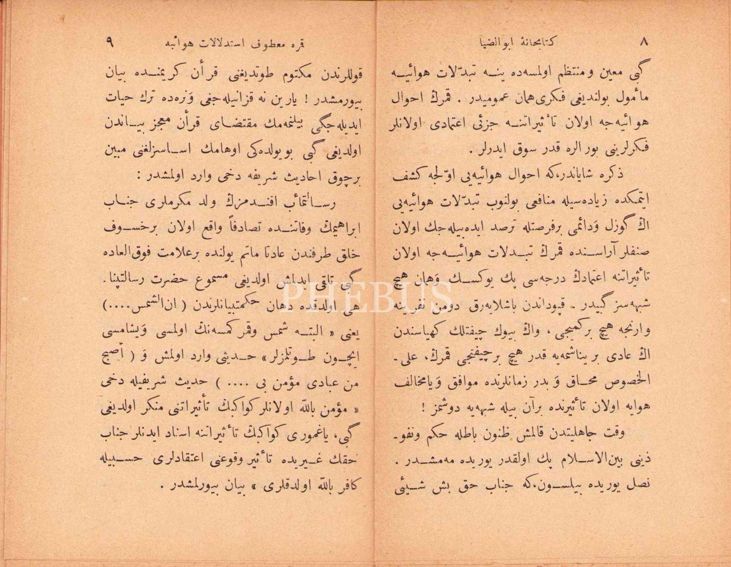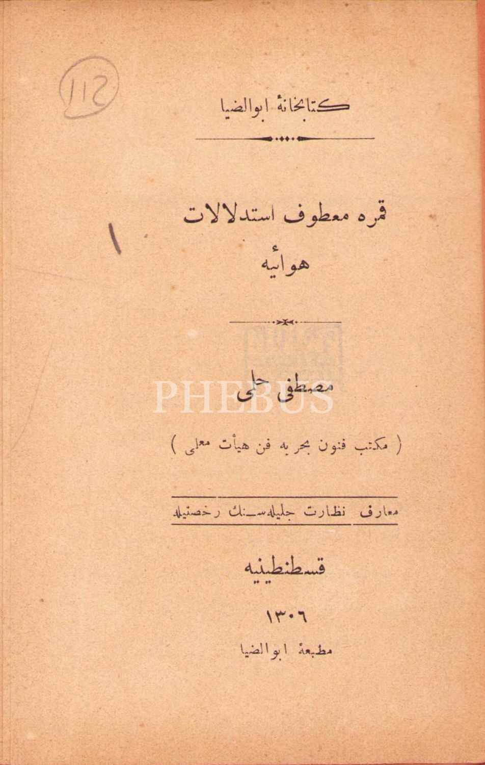 Osmanlıca Kamere Ma'tûf İstidlâlât-ı Havâiyye, Mustafa Hilmi, Ebuzziyya Matbaası, Kostantiniyye 1306, 40 s., 11x16 cm, sayfaları açılmamış ve kapak sayfası yıpranmış haliyle