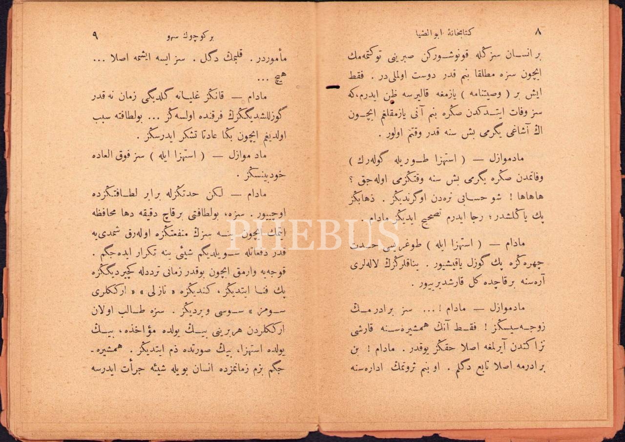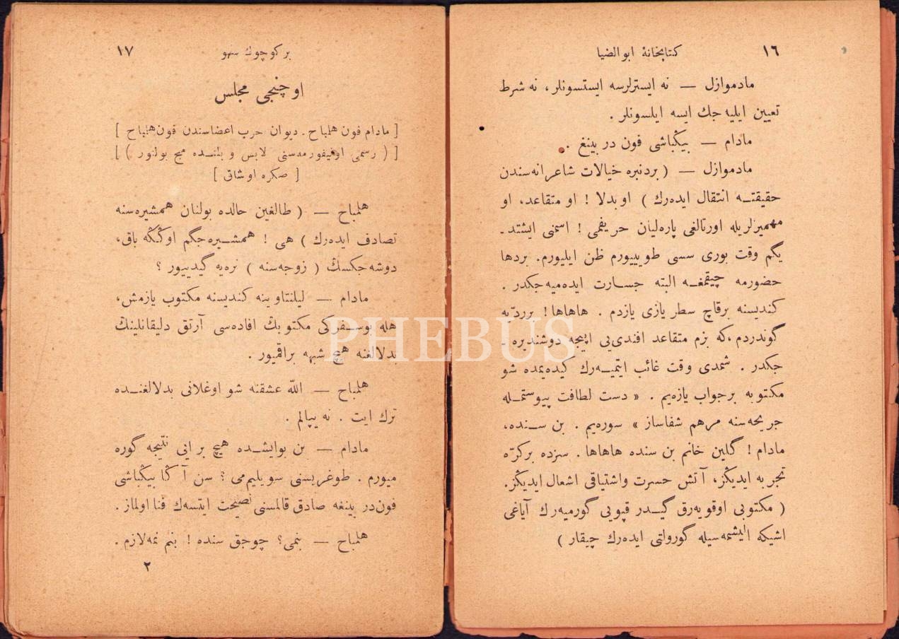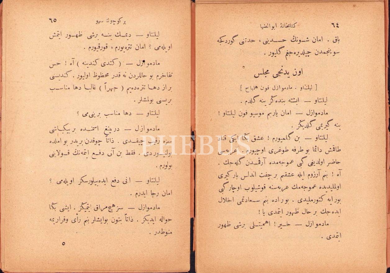 Osmanlıca Bir Küçük Sehv [Komedi], Kolağası Mehmed Tahir, Ebuzziya Matbaası, Kostantiniyye 1306, 88 s., 10x15 cm, sayfaları açılmamış ve kapak sayfası yıpranmış haliyle