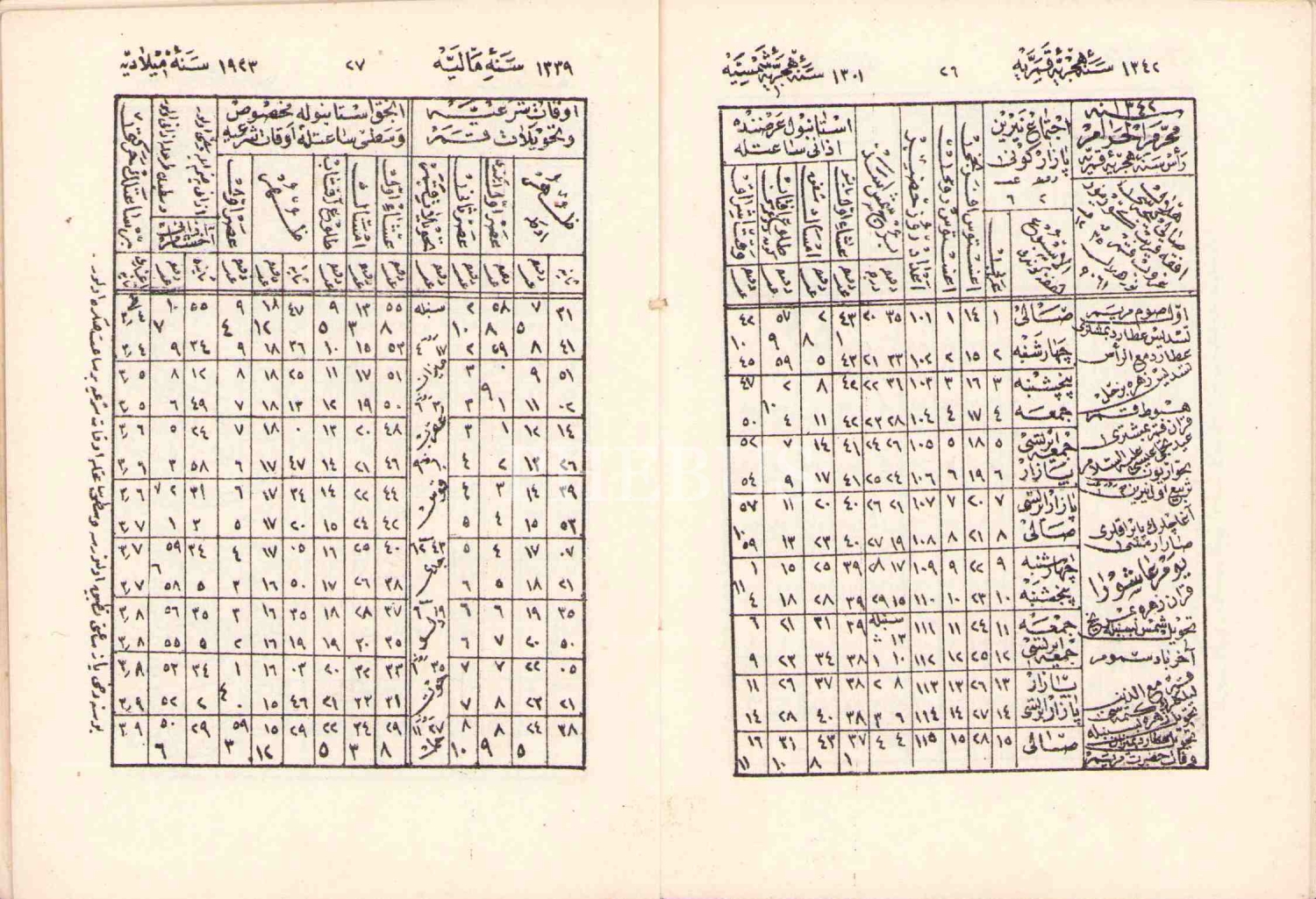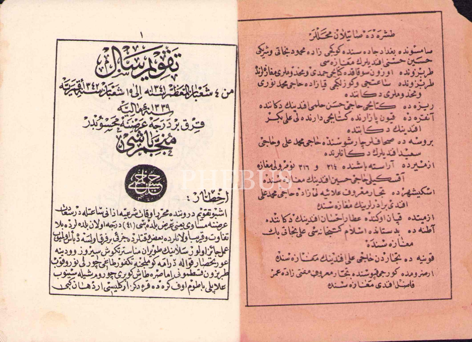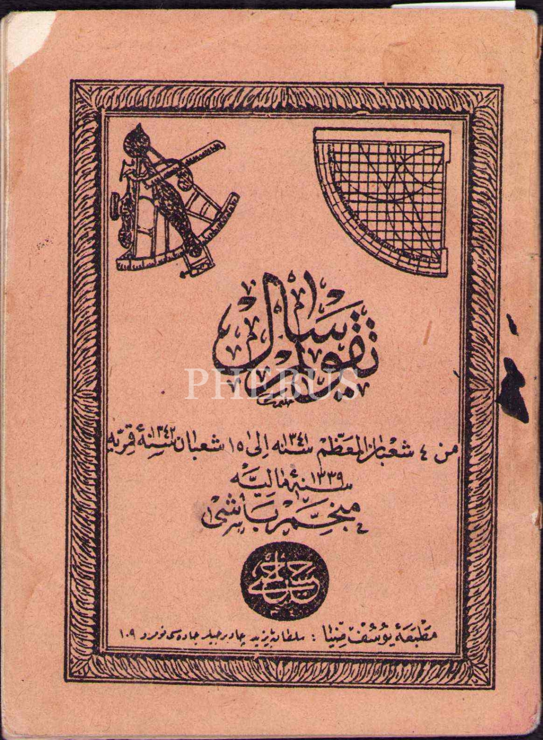 Osmanlıca Takvîm-i Sâl (1339 Mali Senesi), Yusuf Ziya Matbaası, 72 s., 10x13 cm, kapak sayfası yıpranmış haliyle