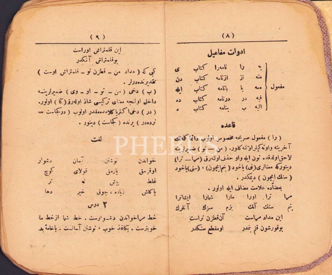 Osmanlıca Zebân-ı Fârsî [Farsça], Feyzi, Kasbar Matbaası, İstanbul 1326, 156 s., 12x18 cm, hafif yıpranmış haliyle