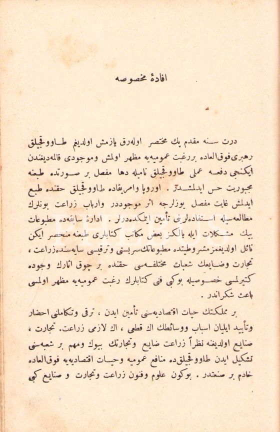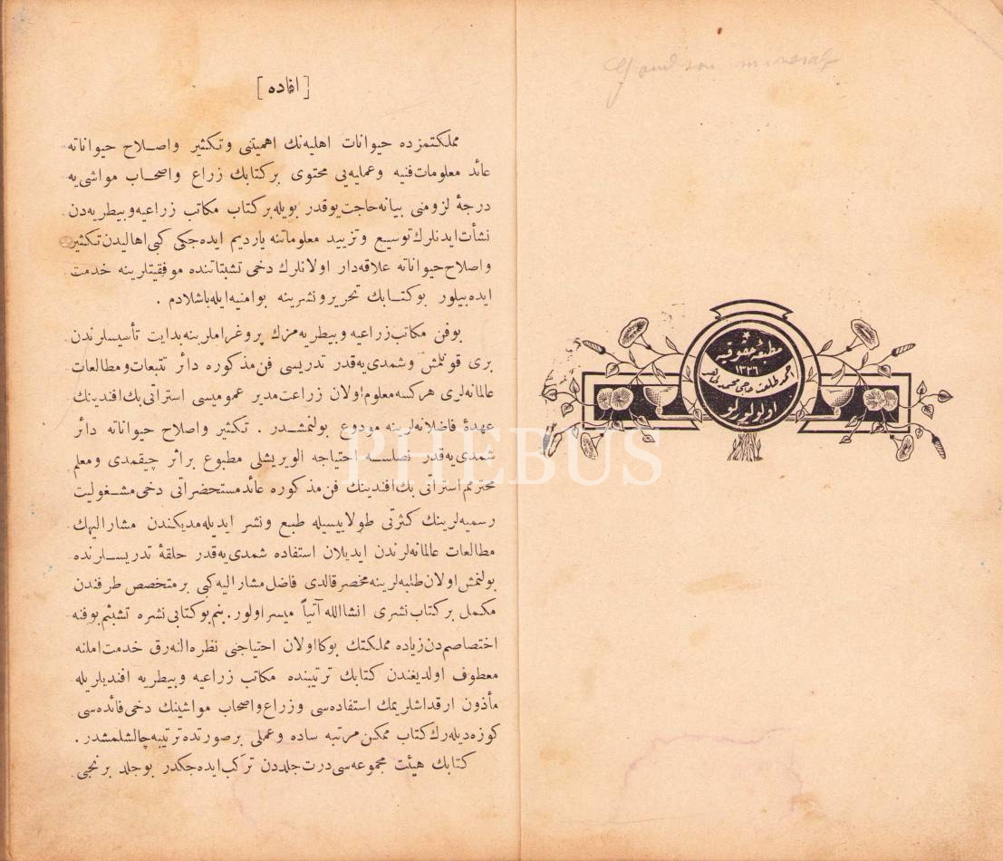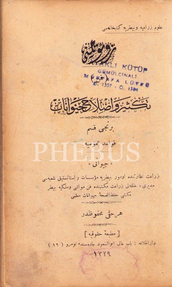 Osmanlıca 2 eser tek ciltte: Teksîr ve Islâh-ı Hayvânat-1. Kısım, Civanî, Hukukiye Matbaası, İstanbul 1329, 381 s.; Amelî Tavukçuluk Rehberi, Cafer Fahri, Tanin Matbaası, İstanbul 1328, 162 s.;