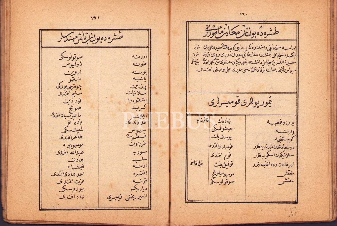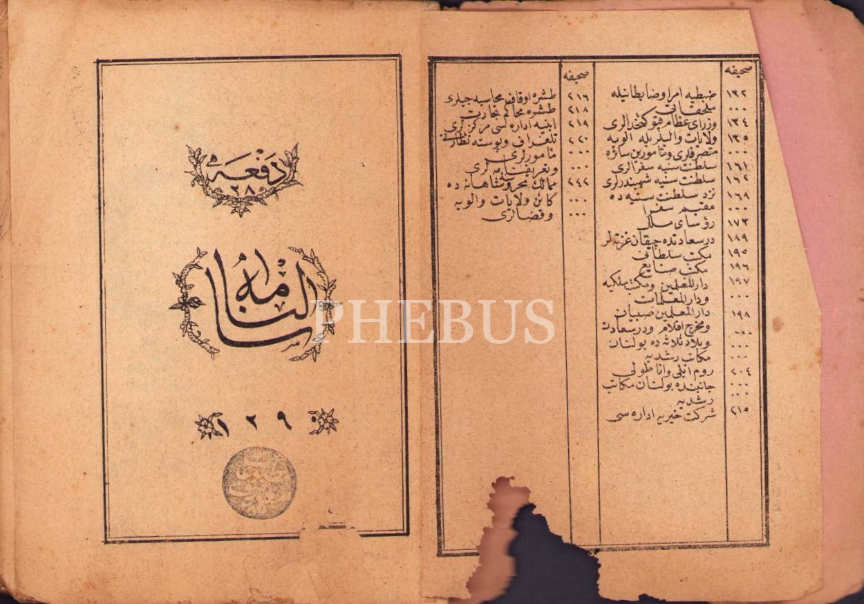 Osmanlıca 1290 Sâlnâmesi [Yıllık], Matbuat-ı Maarif damgalı, 257 s., 12x16 cm, kapak ve birkaç sayfası yıpranmış haliyle