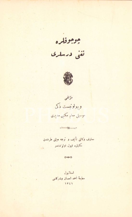 Osmanlıca Çocuklara Tagannî [Müzik] Dersleri, Viyolonist Zeki [Üngör], Ahmed İhsan ve Şürekası, İstanbul 1341, 86 s., 16x24 cm, cildi yıpranmış haliyle