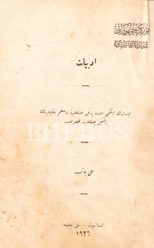 Osmanlıca Edebiyyât, Ali Canib, Millî Matbaa, İstanbul 1926, 492 s., 16x23 cm, cildi va birkaç sayfası hafif yıpranmış haliyle