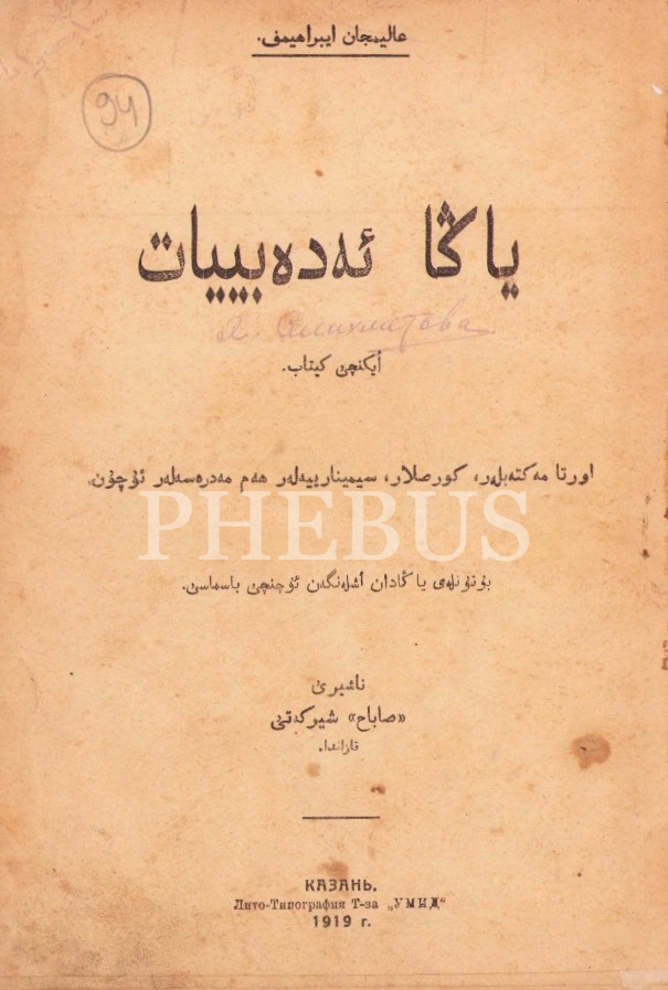 Tatarca Yana [Yeni?] Edebiyat, Alimcan İbrahimov, Kazan 1919, 221 s., 16x24 cm, cildi yıpranmış haliyle