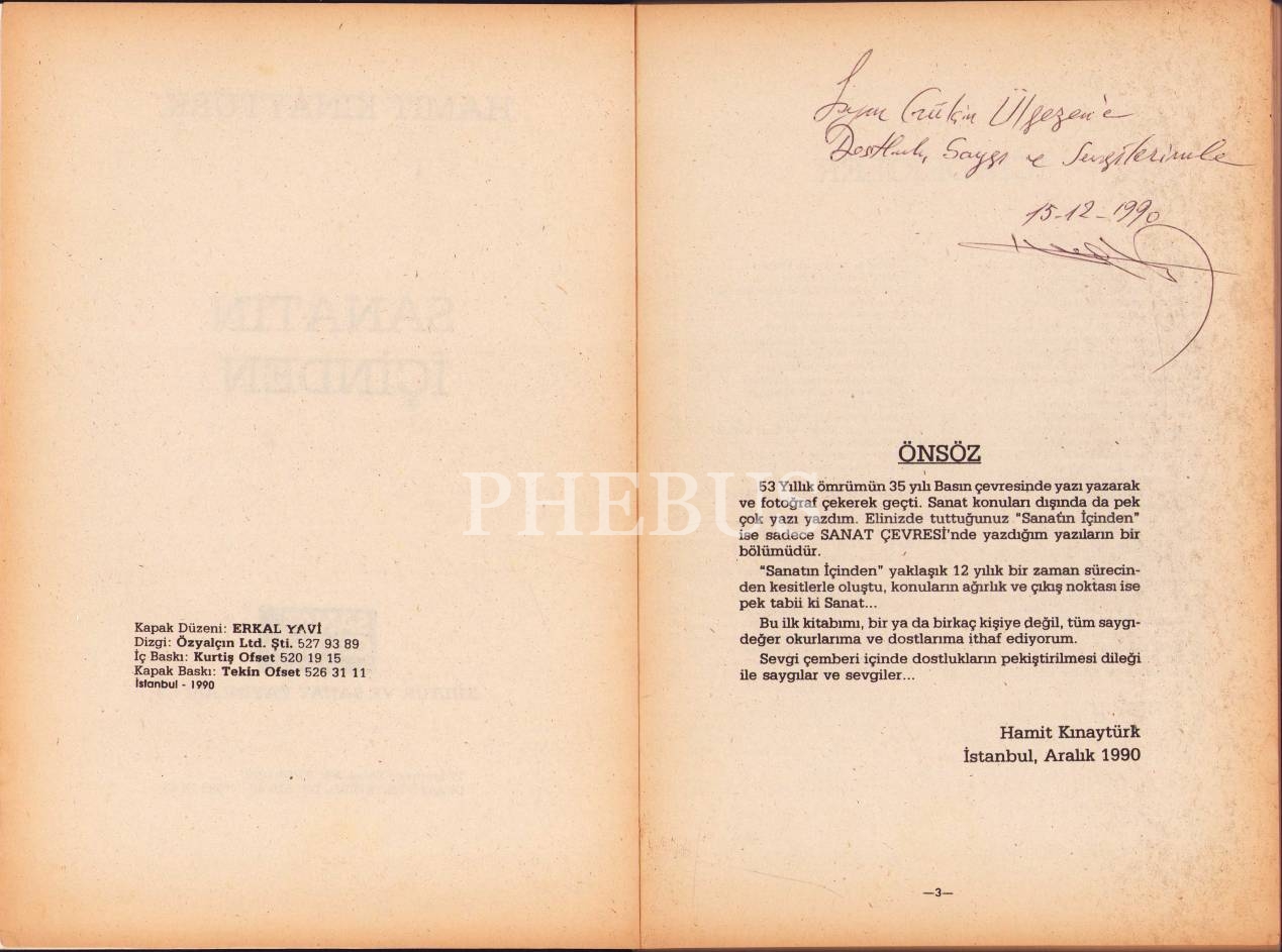 Hamit Kınaytürk'ten İthaflı ve İmzalı "Sanatın İçinden", Sanat Çevresi Kültür ve Sanat Yayınları, İstanbul 1990, 173 sayfa, 17x25 cm