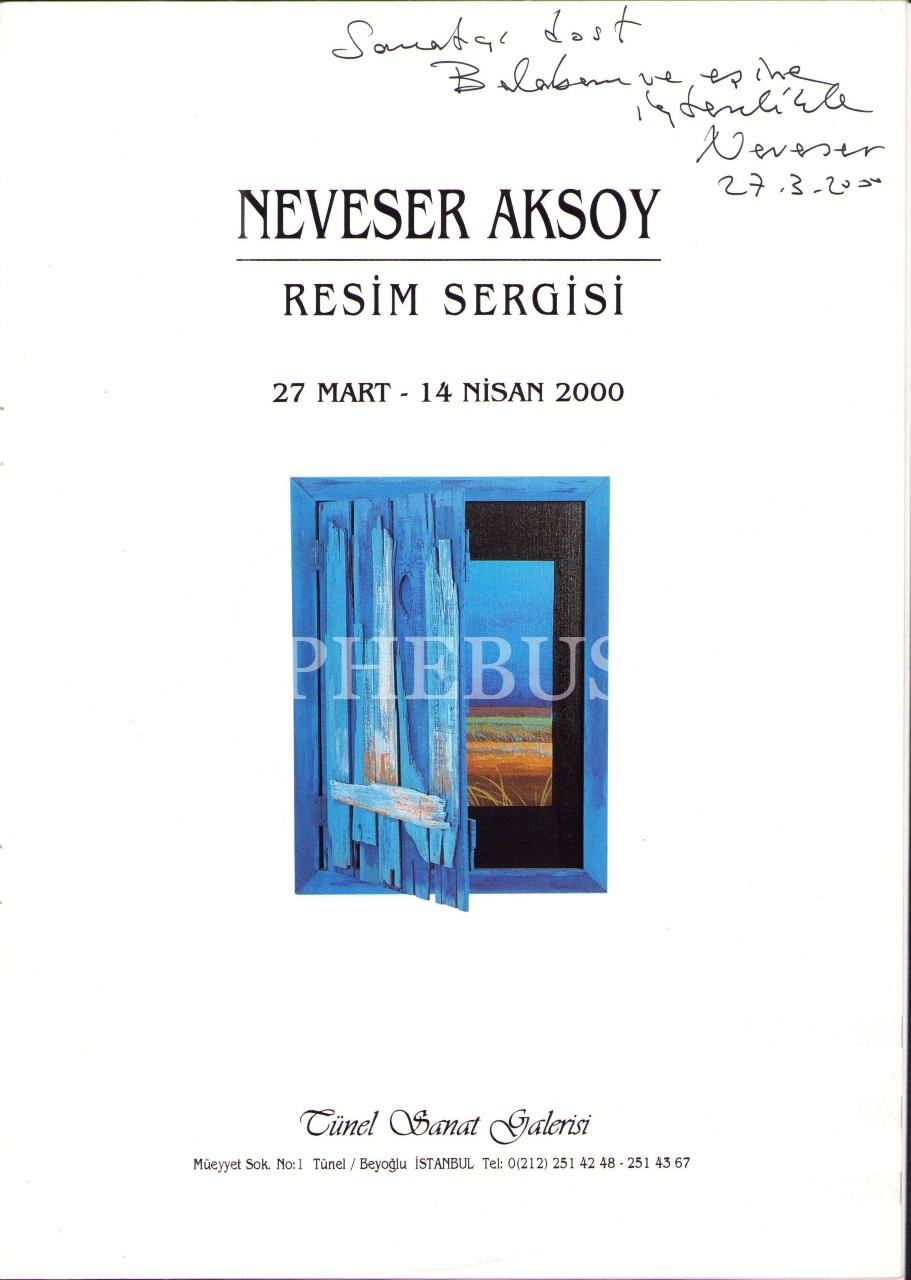 Ressam Neveser Aksoy'dan Ressam İbrahim Balaban ve Eşine İthaflı ve İmzalı "Neveser Aksoy Resim Sergisi", Ziraat Bankası Tünel Sanat Galerisi, 2000, 21x30 cm