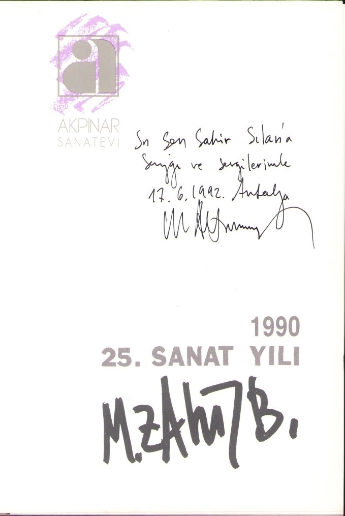 Zahit Büyükişliyen'den İthaflı ve İmzalı "Zahit Büyükişliyen 25. Sanat Yılı", Akpınar Sanat Evi, Ankara 1990, Numaralı, 21x21 cm