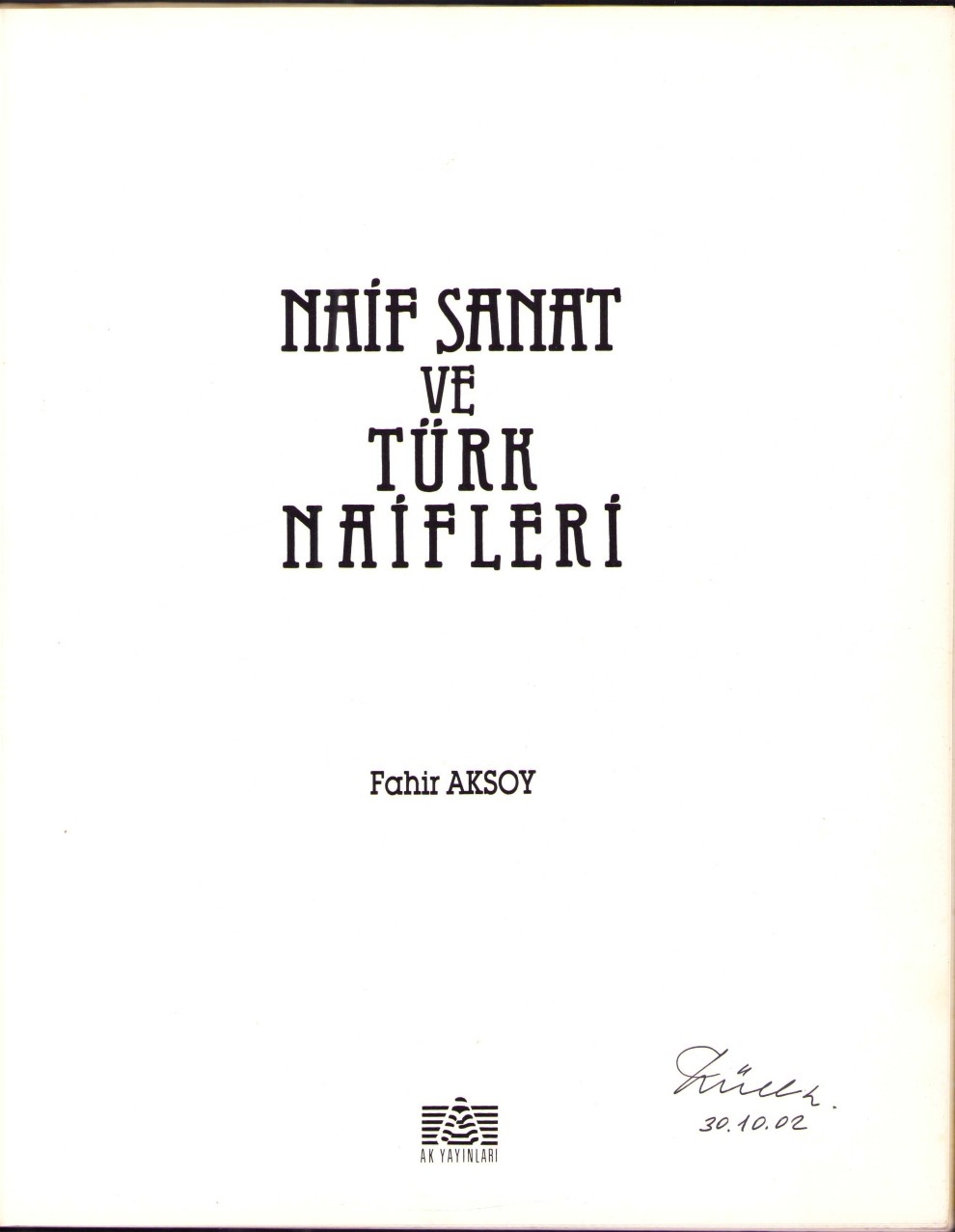 Naif Sanat ve Türk Naifleri, Fahir Aksoy, Ak Yayınları, 1990, 65 sayfa, şömizi hâliyle, 24x30 cm
