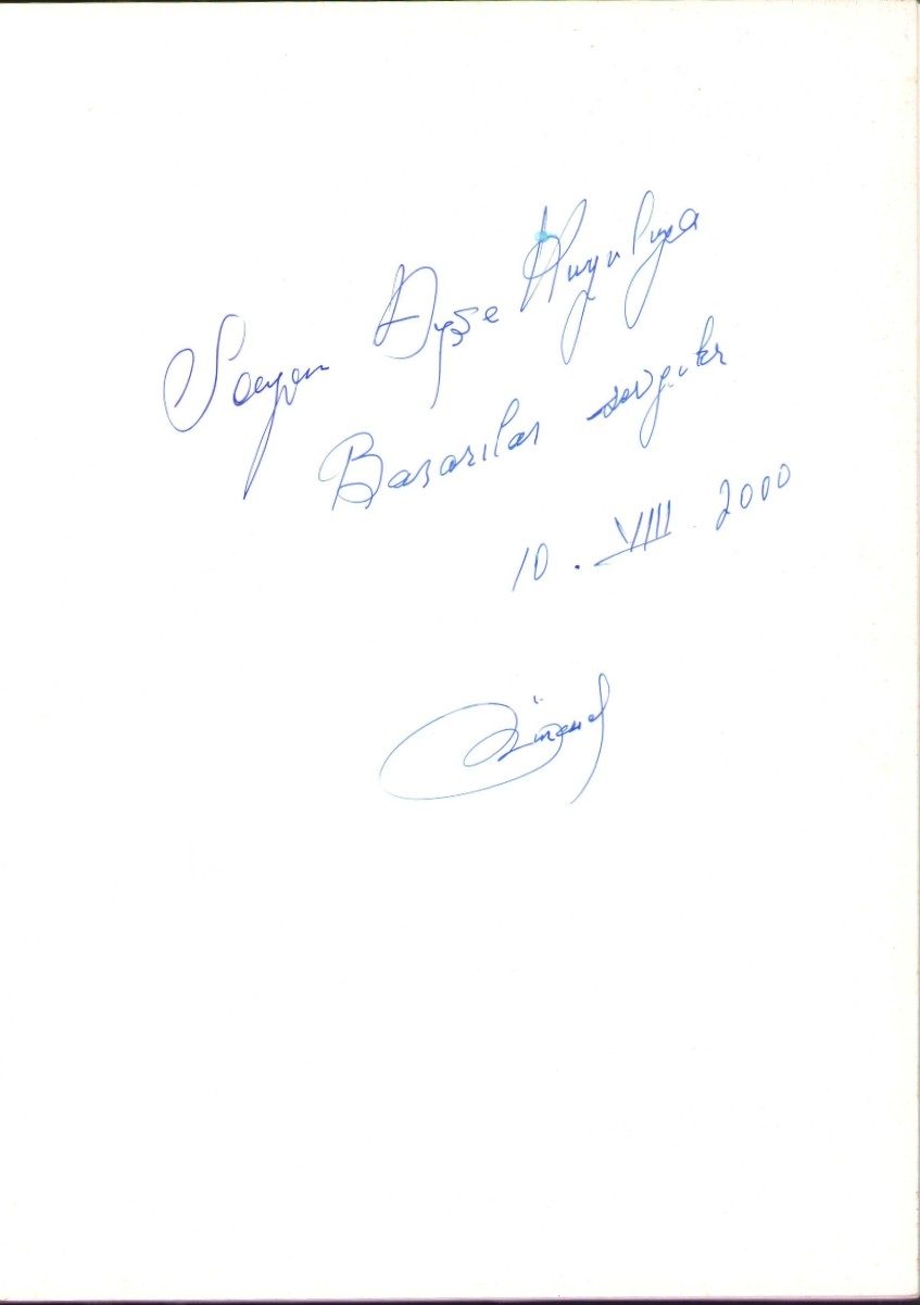 İthaf, "Sayın Ayşe Kuyulu'ya başarılar sevgiler" şeklindedir.