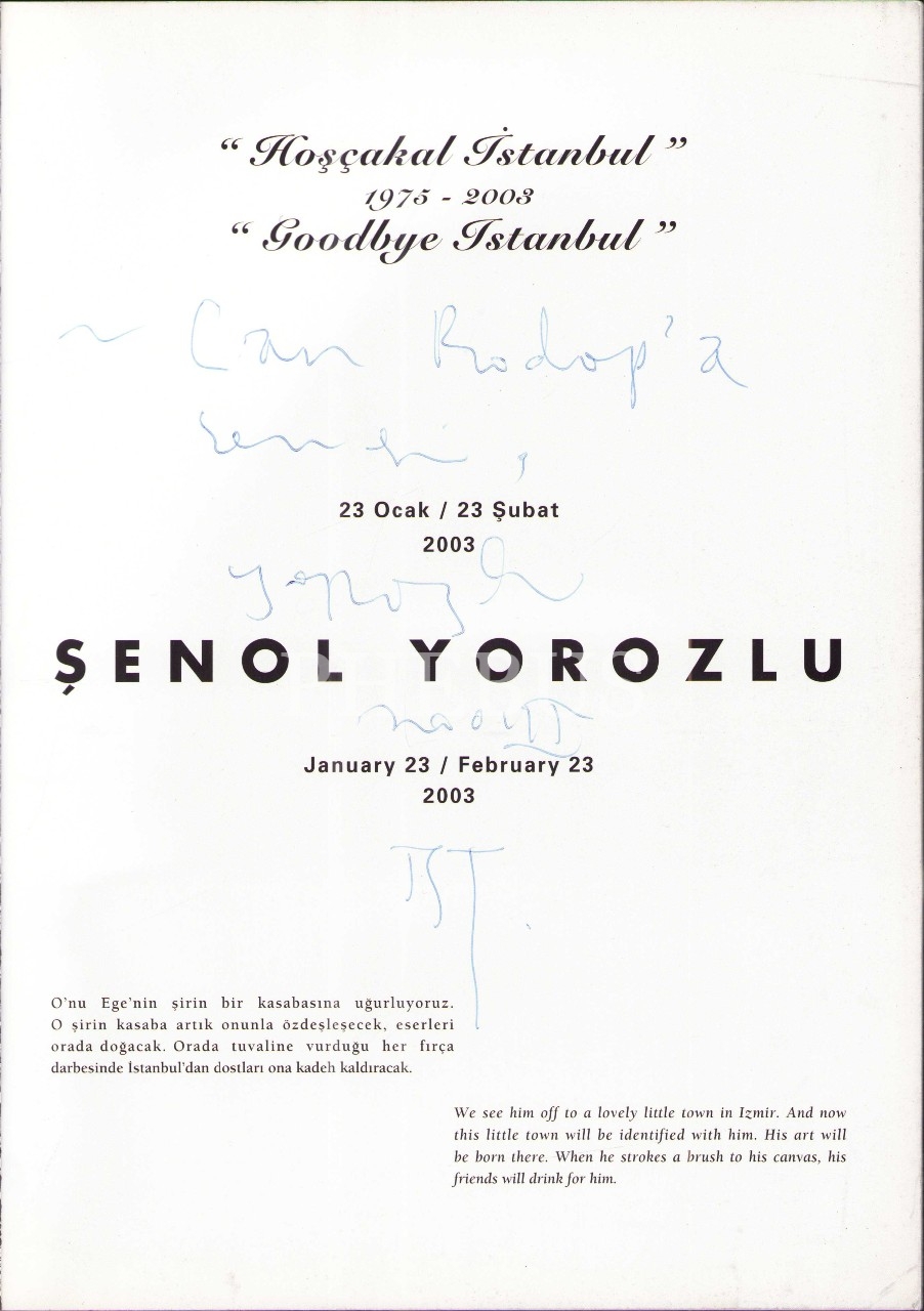Şenol Yorozlu'dan İthaflı ve İmzalı "Hoşçakal İstanbul 1975-2003", Antik Sanat Galeri, Şubat 2003, 35 sayfa, 25x33 cm
