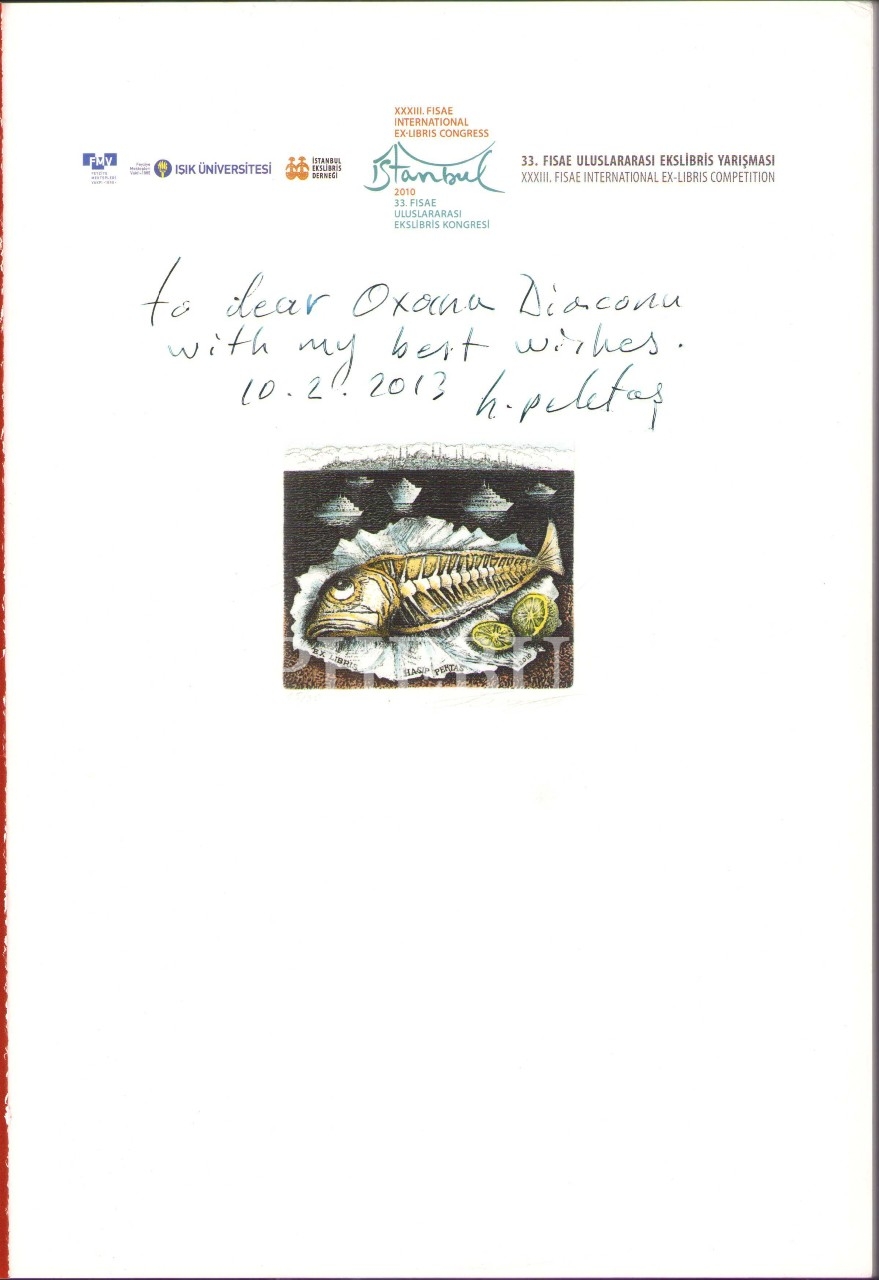 Hasip Pektaş'tan İthaflı ve İmzalı 33. Uluslarası Ekslibris Yarışması Sergi Katalogu, Fevziye Mektepleri Vakfı, 2010, 218 sayfa, 21x30 cm
