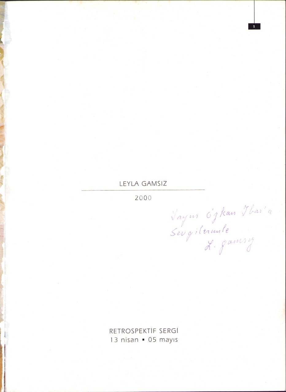 Leyla Gamsız'ın İthaflı ve İmzalı Retrospektif Sergisi Kataloğu, Antik Sanat Galerisi, Mayıs 2000, 48 sayfa, 25x33 cm