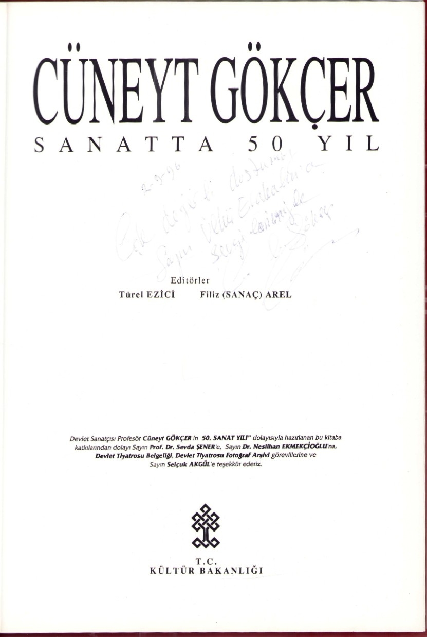 Cüneyt Gökçer'den İthaflı ve İmzalı "Sanatta 50 Yıl", Kültür Bakanlığı Yayını, 1994, 159 sayfa, 25x34 cm