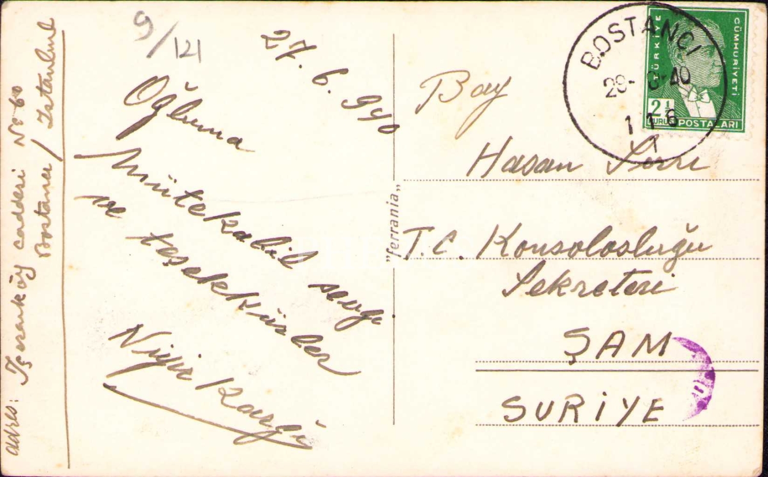 İstanbul Galata Köprüsü, arkasında 1940 tarihli yazı mevcut ve postadan geçmiş, üst köşesi kırık haliyle