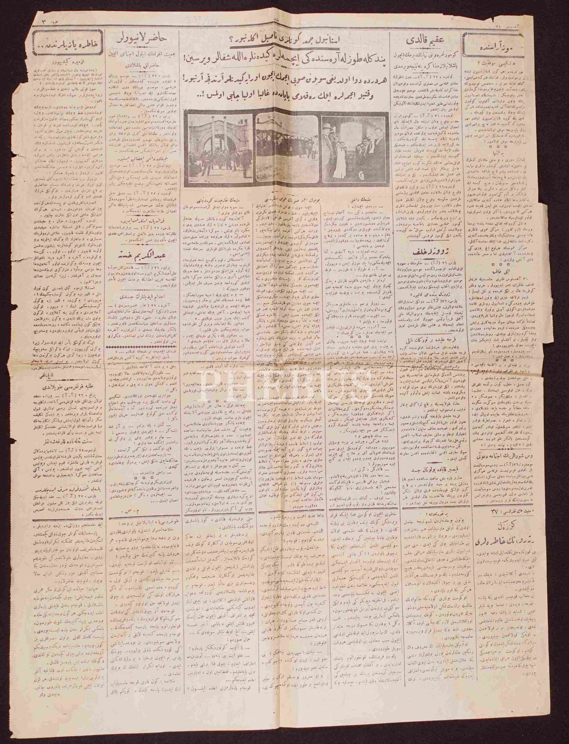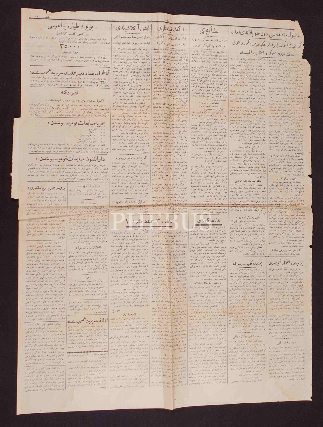 Osmanlıca tek gazete sayfası, 45x61 cm, hafif yıpranmış haliyle