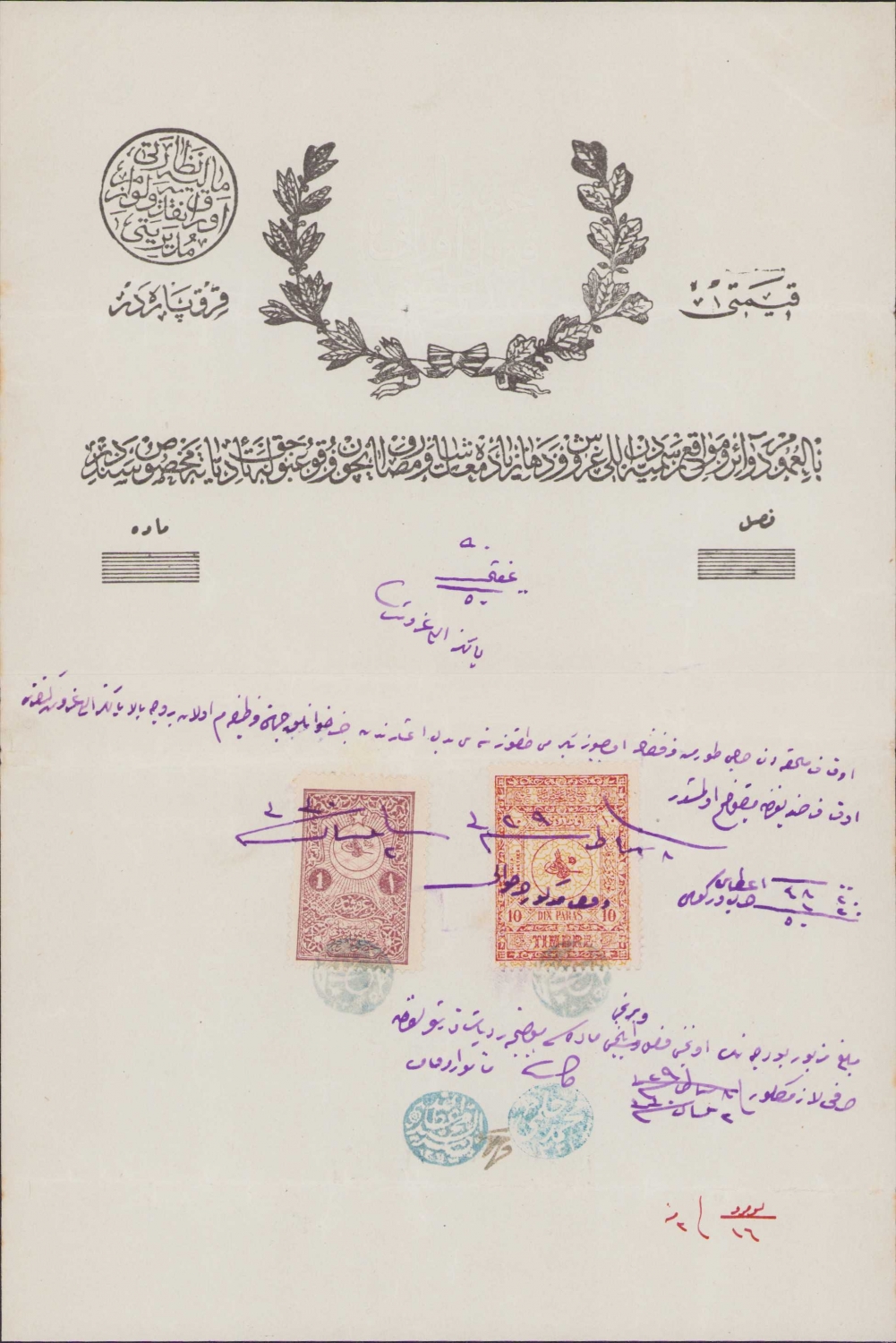 Osmanlı Maliye Nezareti Evrak Müdüriyeti senet, 1329 tarihli, pullu mühürlü, 17x25cm