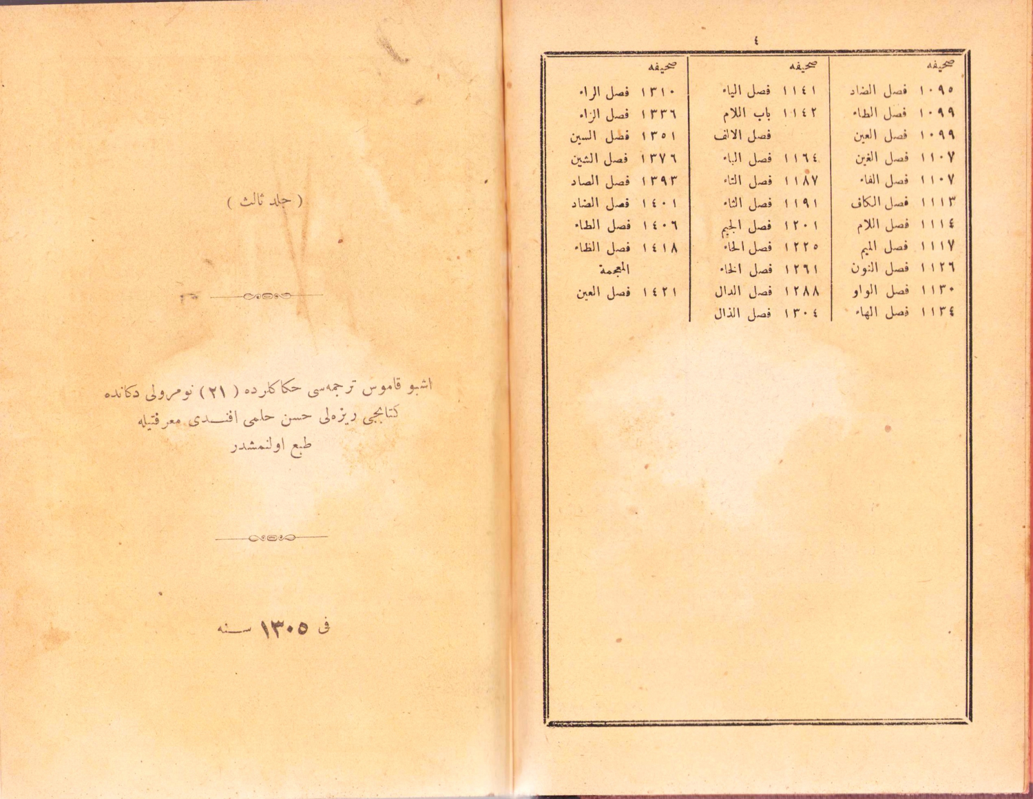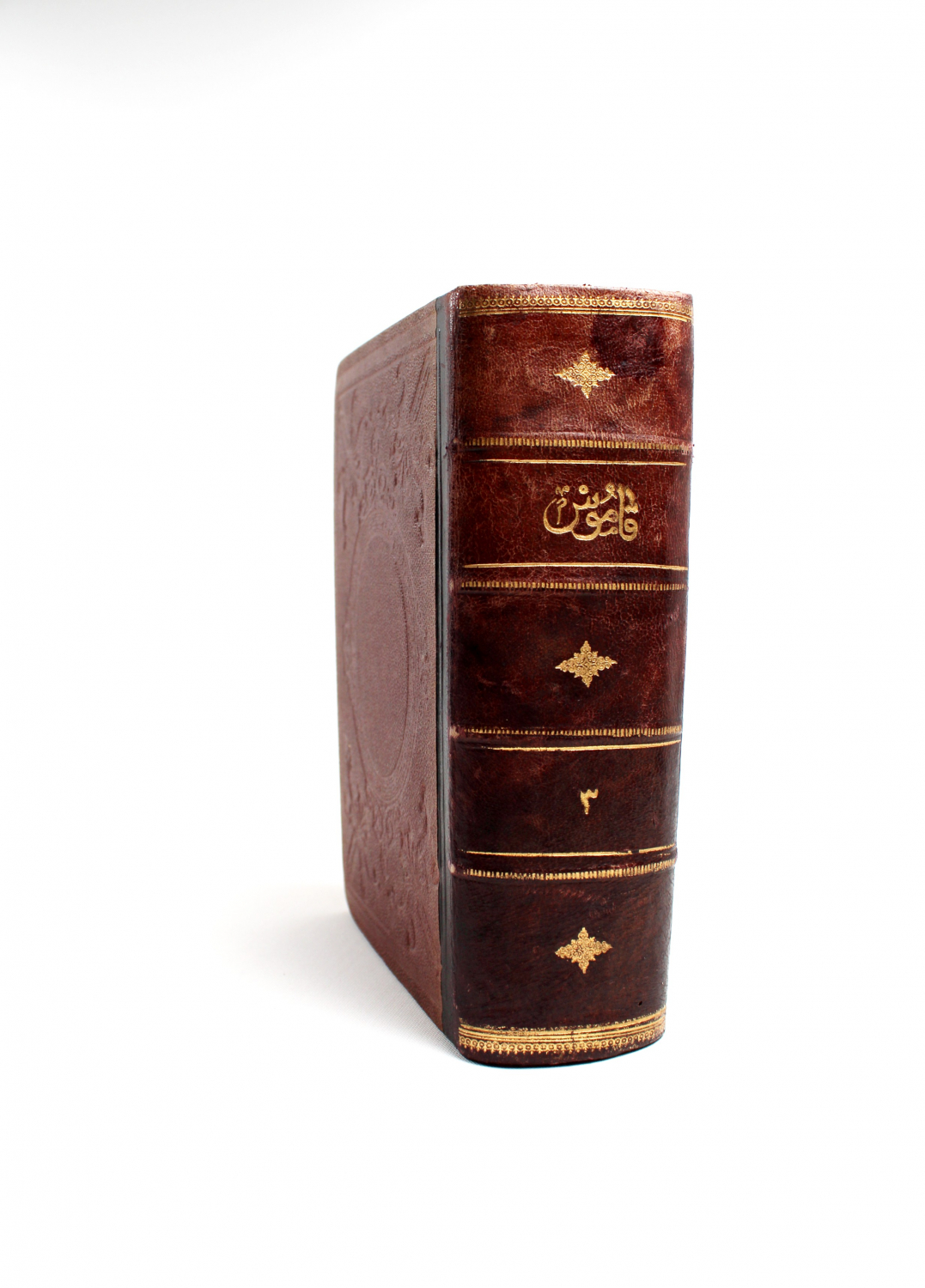 Kamus 3. Cilt, Bahriye Matbaası, 1889 tarihli, Osmanlıca Kamus Tercümesi, 1464 sayfa, deri cildinde, 15x21 cm