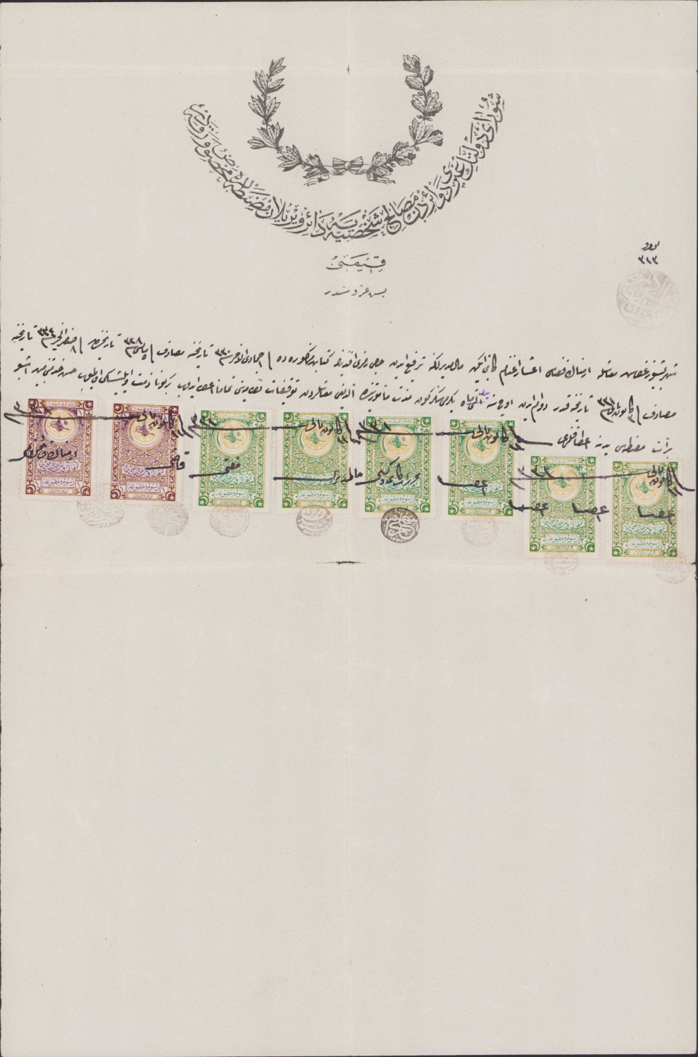 Karaman Ermenek Kazası, 1331 tarihli Osmanlıca, bol pullu, 25x38cm