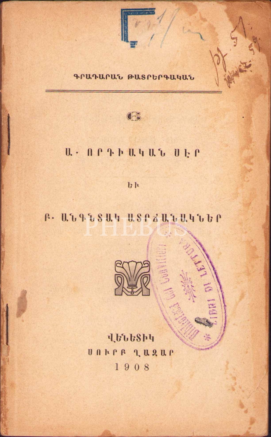 Ermenice Kitap: Çocuk Sevgisi [Vortiagan Ser], Surp Ğazar Matbaası, Viyana - 1908, 95 sayfa, 10x17 cm