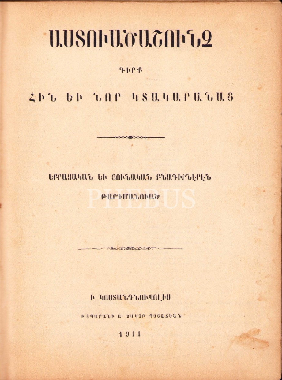 Ermenice İncil [Asdvadzaşunç], Hagop Boyacıyan Matbaası, İstanbul - 1911, 1107 sayfa, 21x29 cm
