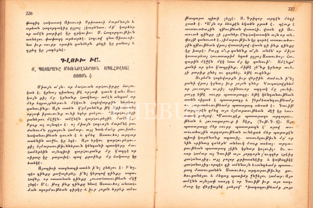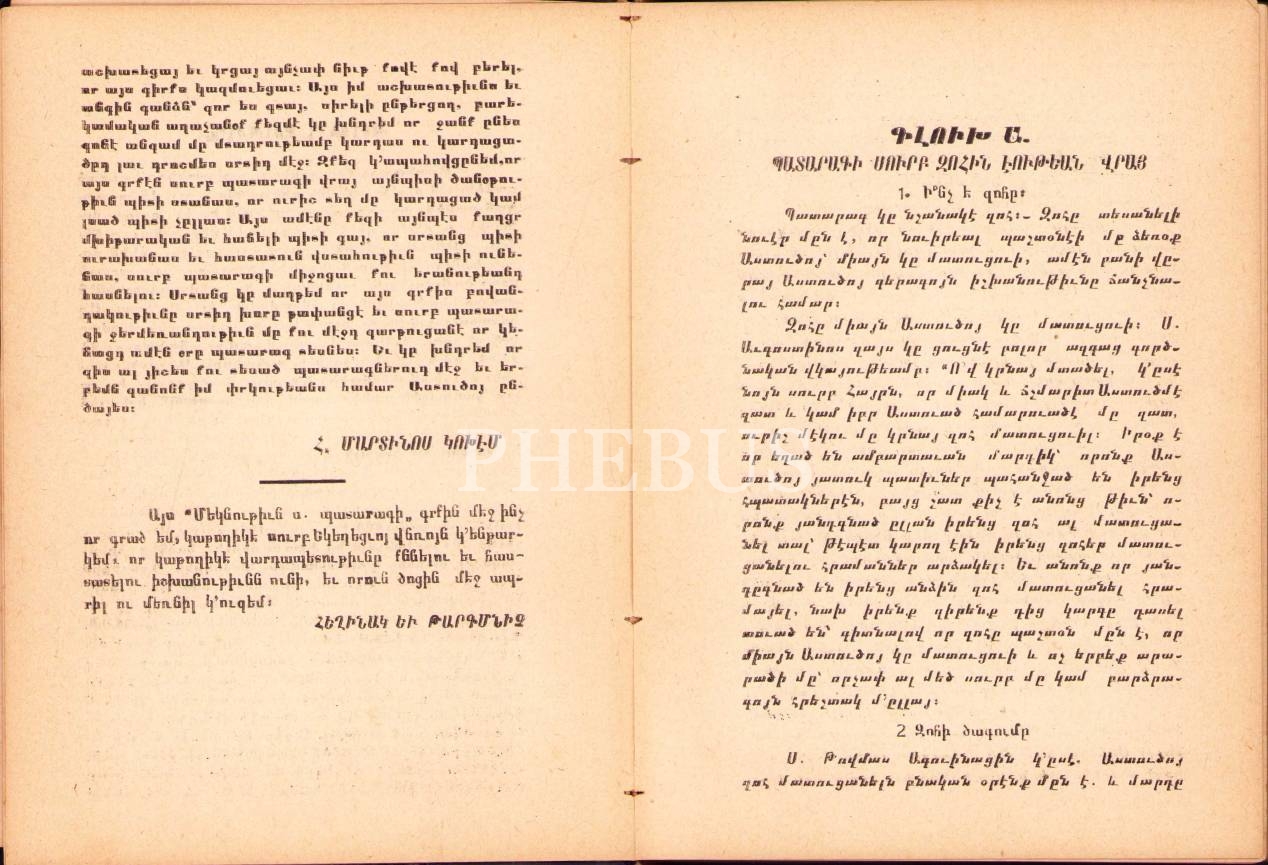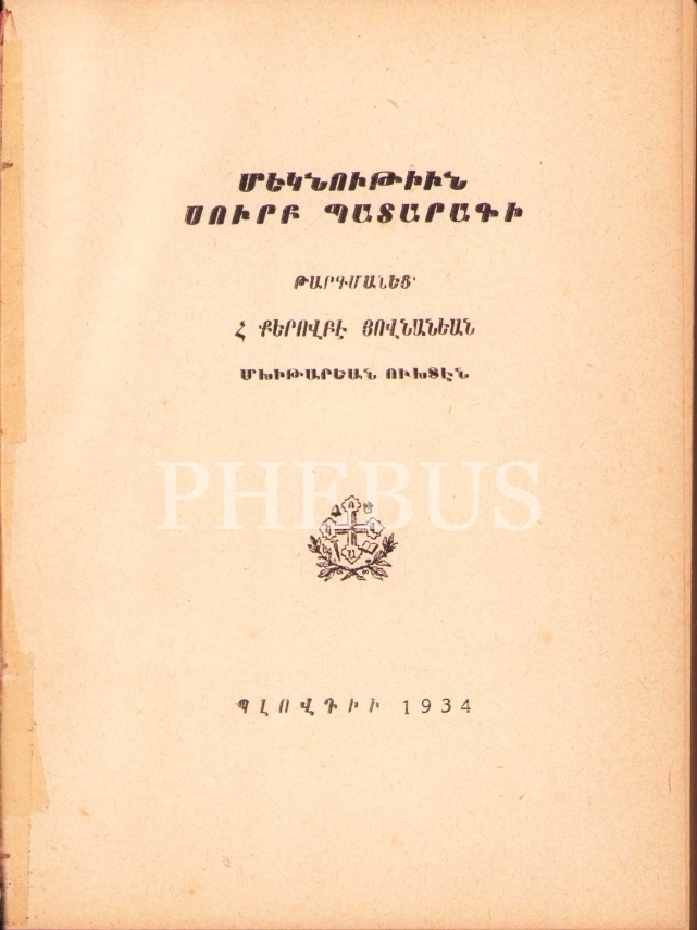 Ermenice Kitap: Kutsal Ayinin Yorumu [Megnutyun Surp Badaraki], Rahip Kapiyel Hovnanyan, 1934, 335 sayfa, 13x18 cm