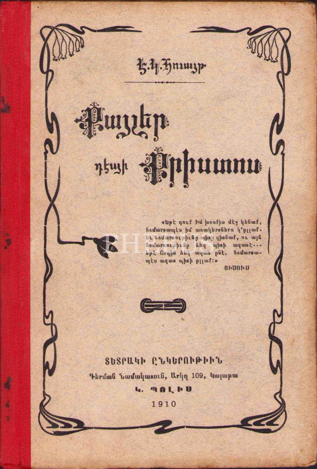 Ermenice Kitap: İsaya Doğru Adımlar [Kayler Tebi Krisdosi], E. G. Huayt, Dedrag Cemiyeti, İstanbul - 1910, 156 sayfa, 13x18 cm
