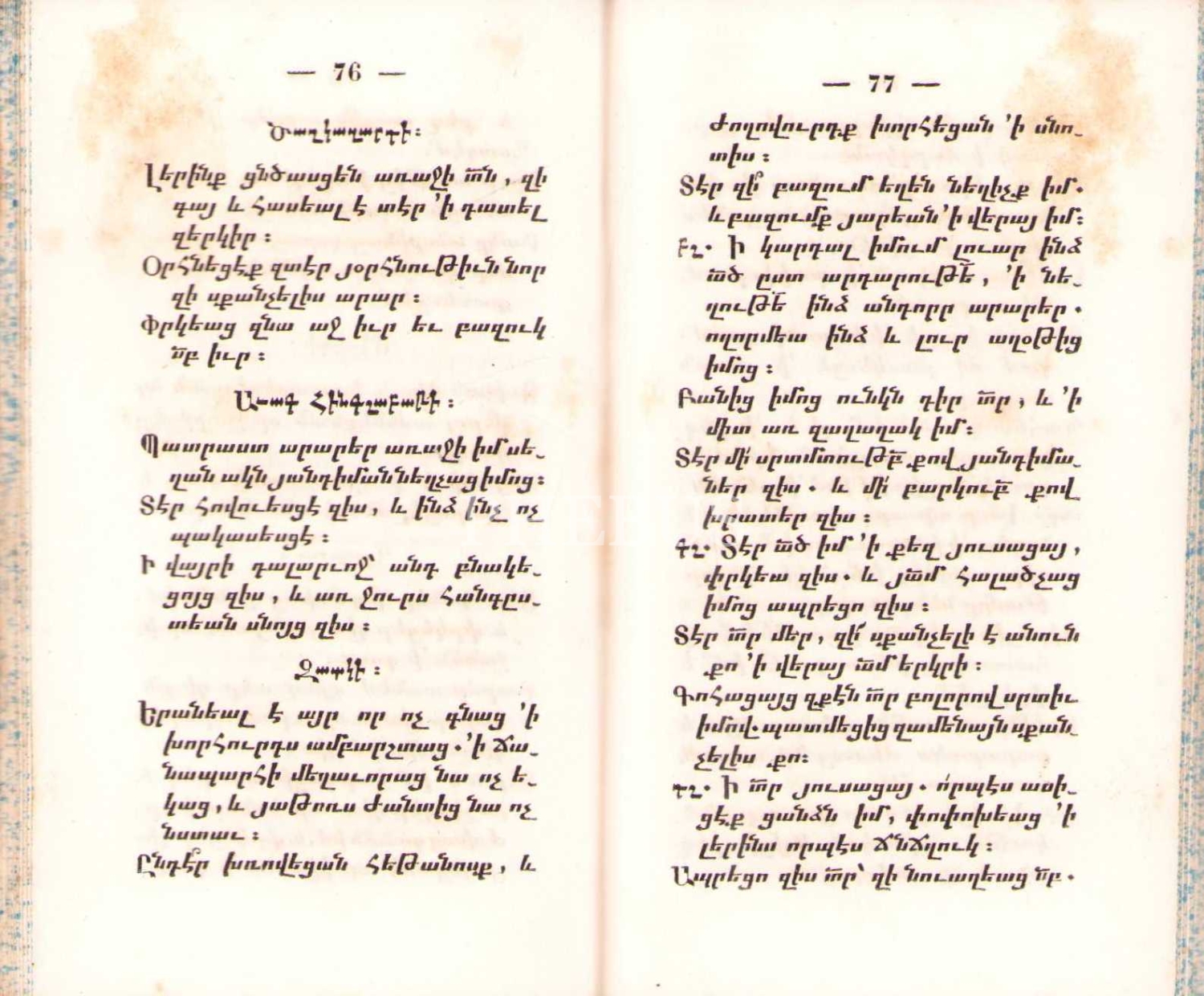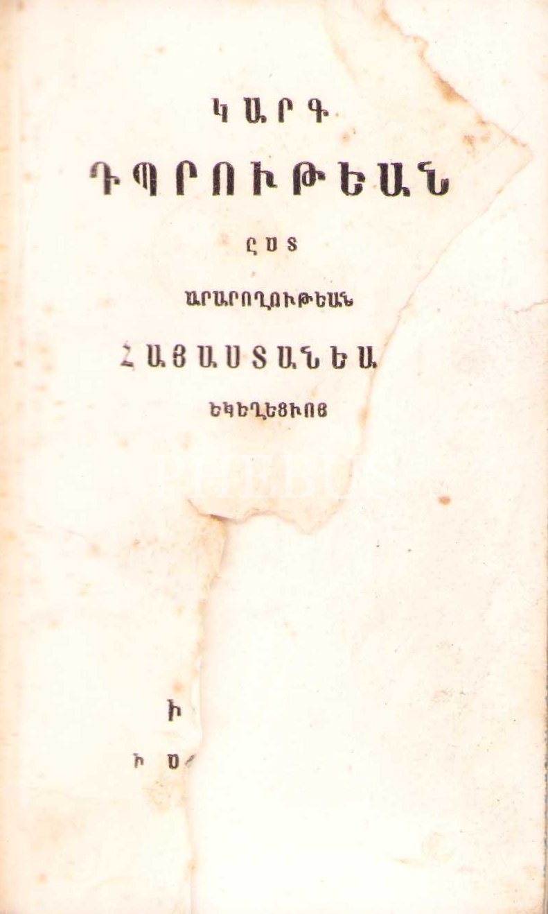 Ermenice Kitap: Ermenistan Kilisesinin Dualarının Edebi Nizamı [Gark Tıbrutyan Isd Araroğutyan Hayasdanya Yegeğetsvo], 273 sayfa, 7x12 cm