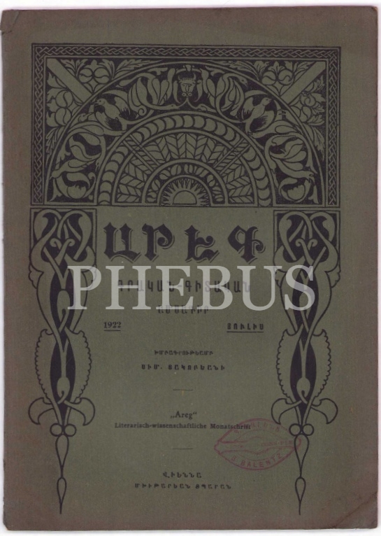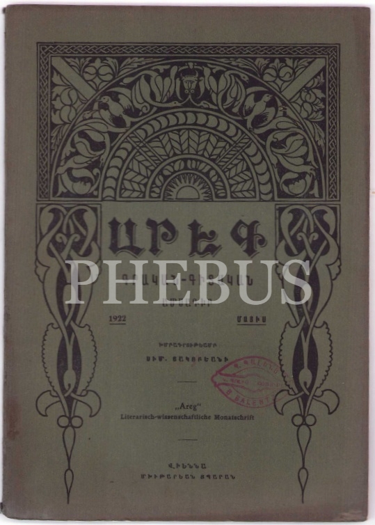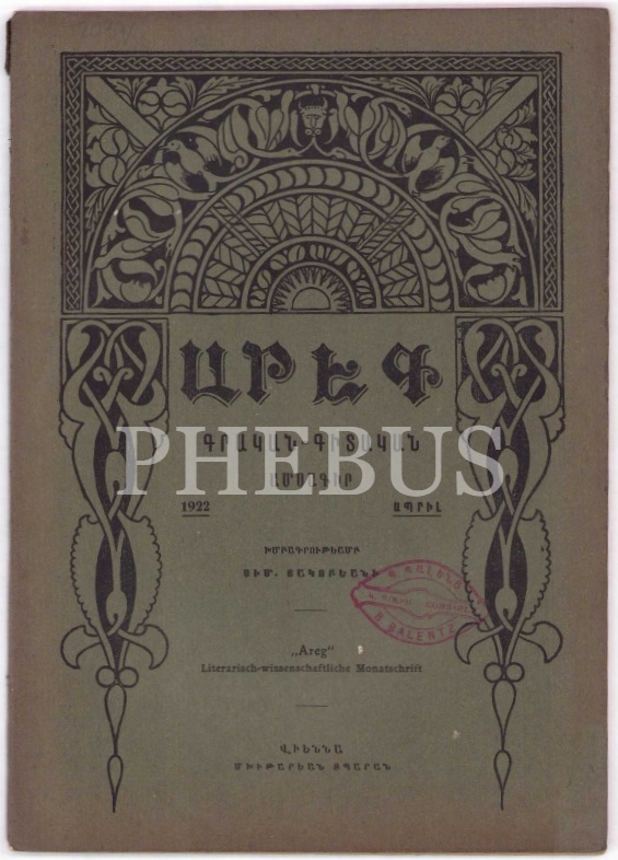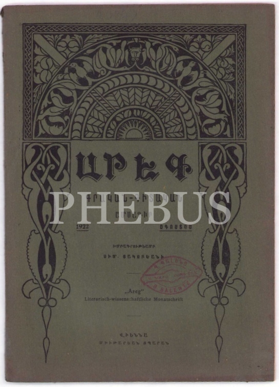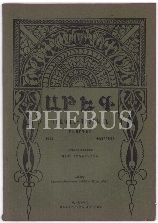 8 Sayı Ermenice Dergi: Arek Mecmuası, Mıhitaryan Matbaası, Viyana - 1922, 17x24 cm