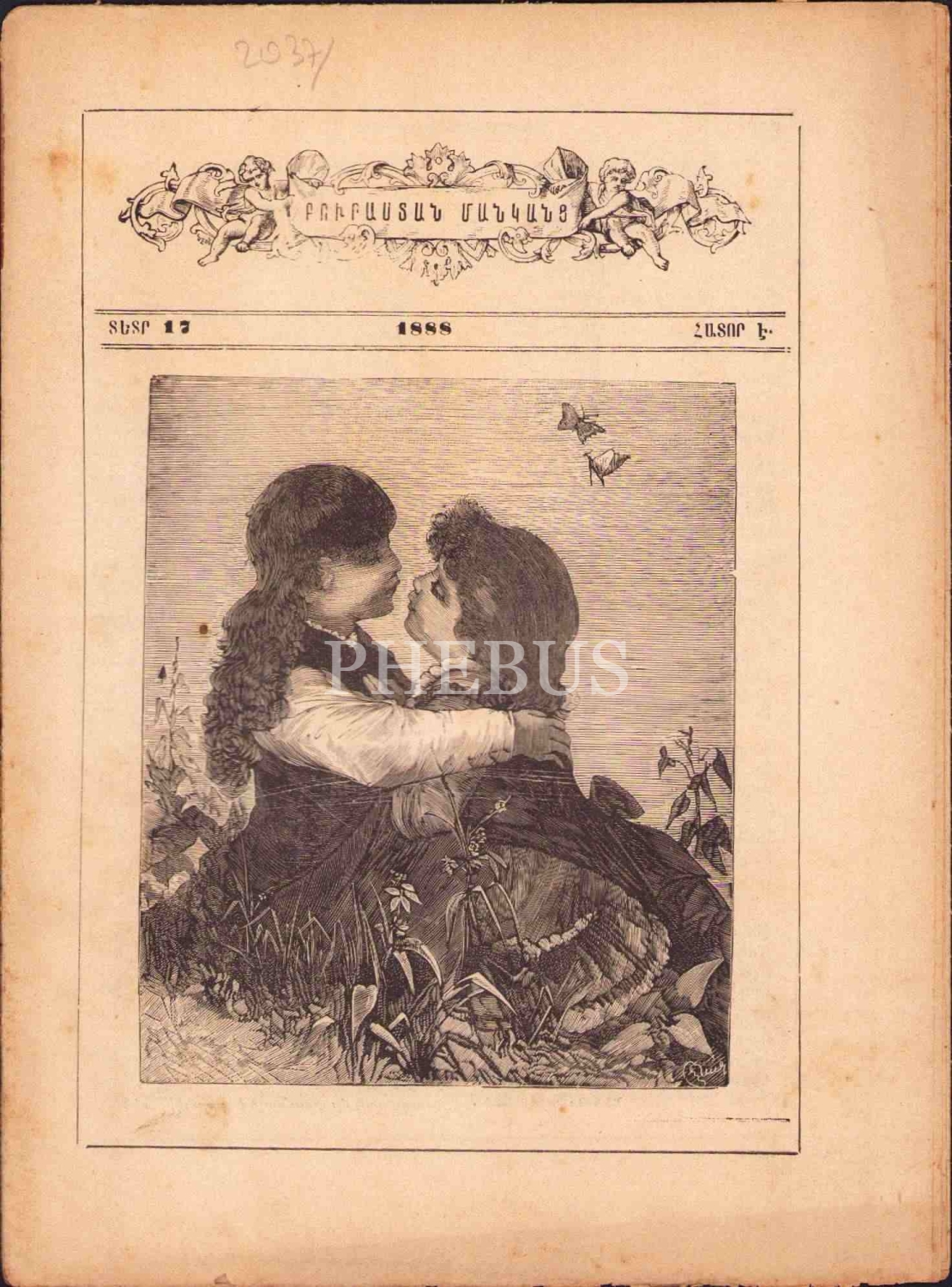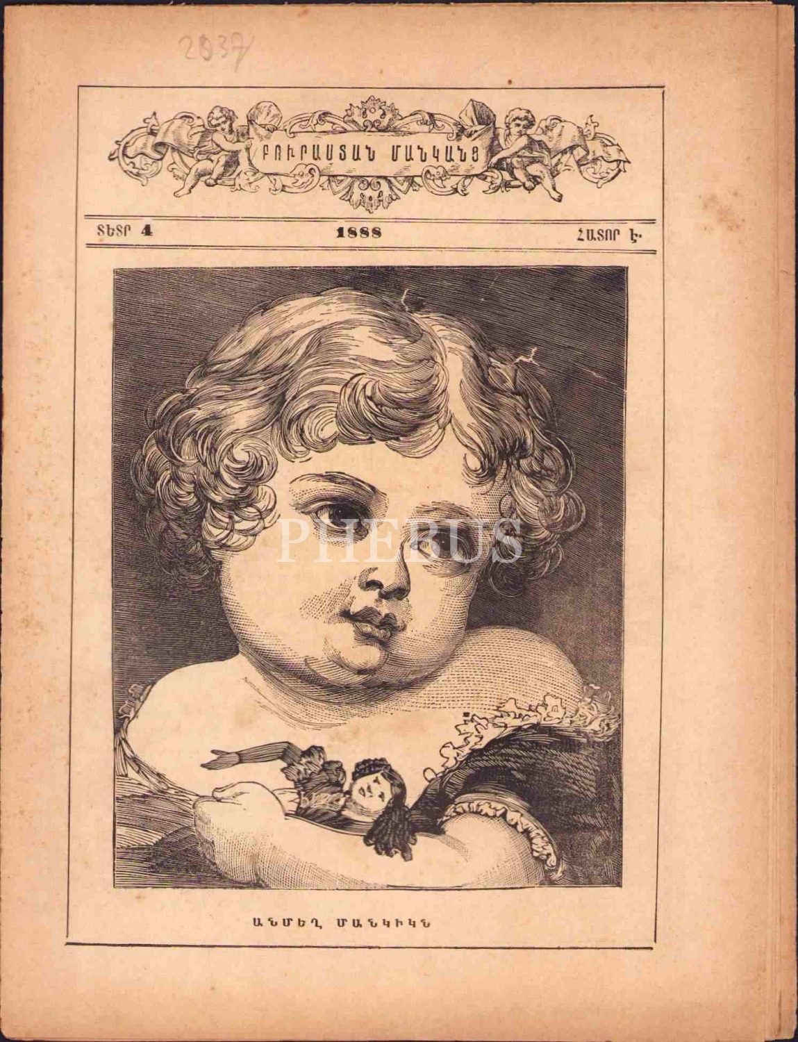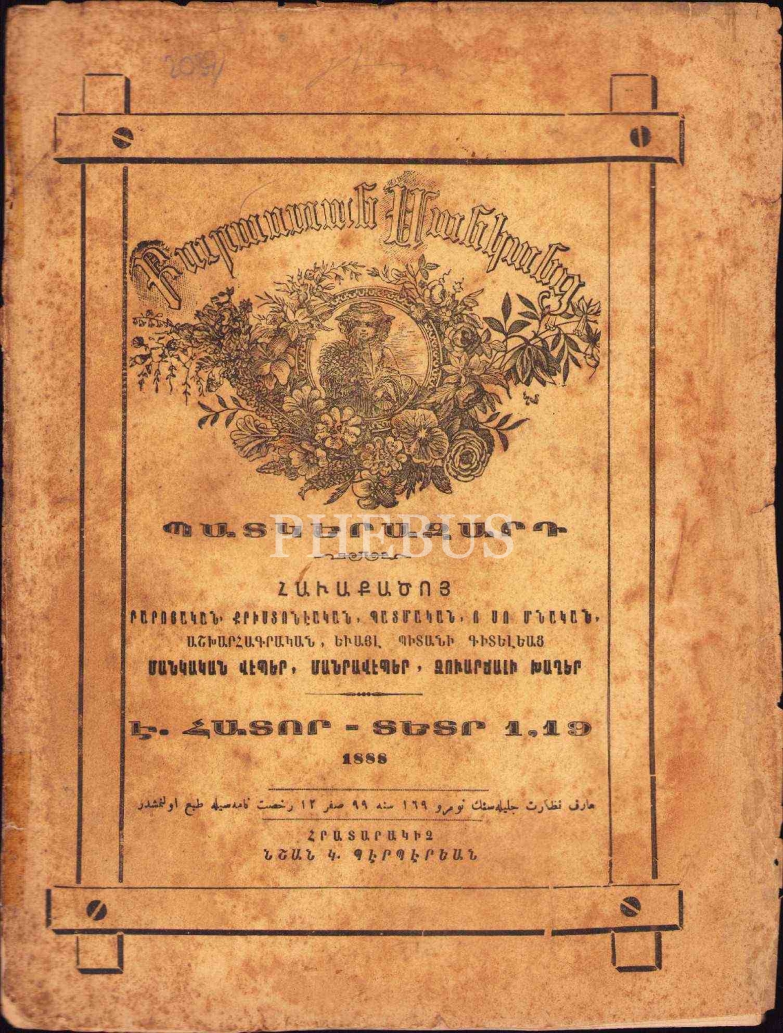 Çeşitlli Sayılara Ait 14 Adet Ermenice Çocukların Güzel Kokular Bahçesi Mecmuası [Purasdan Mangants], Nışan Berberyan Matbaası, İstanbul - 1888, 19x26 cm
