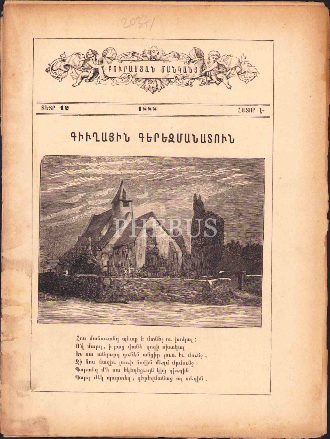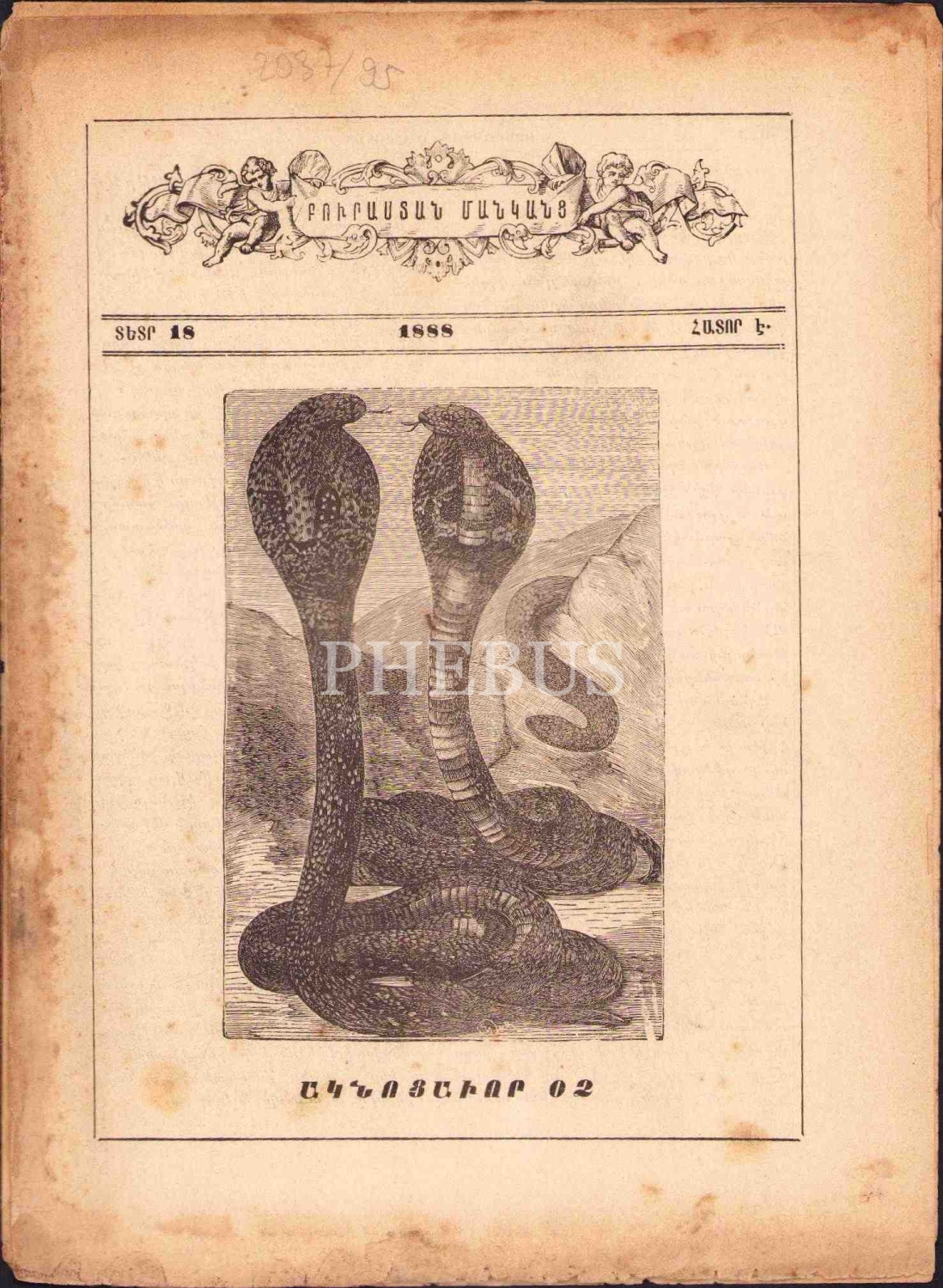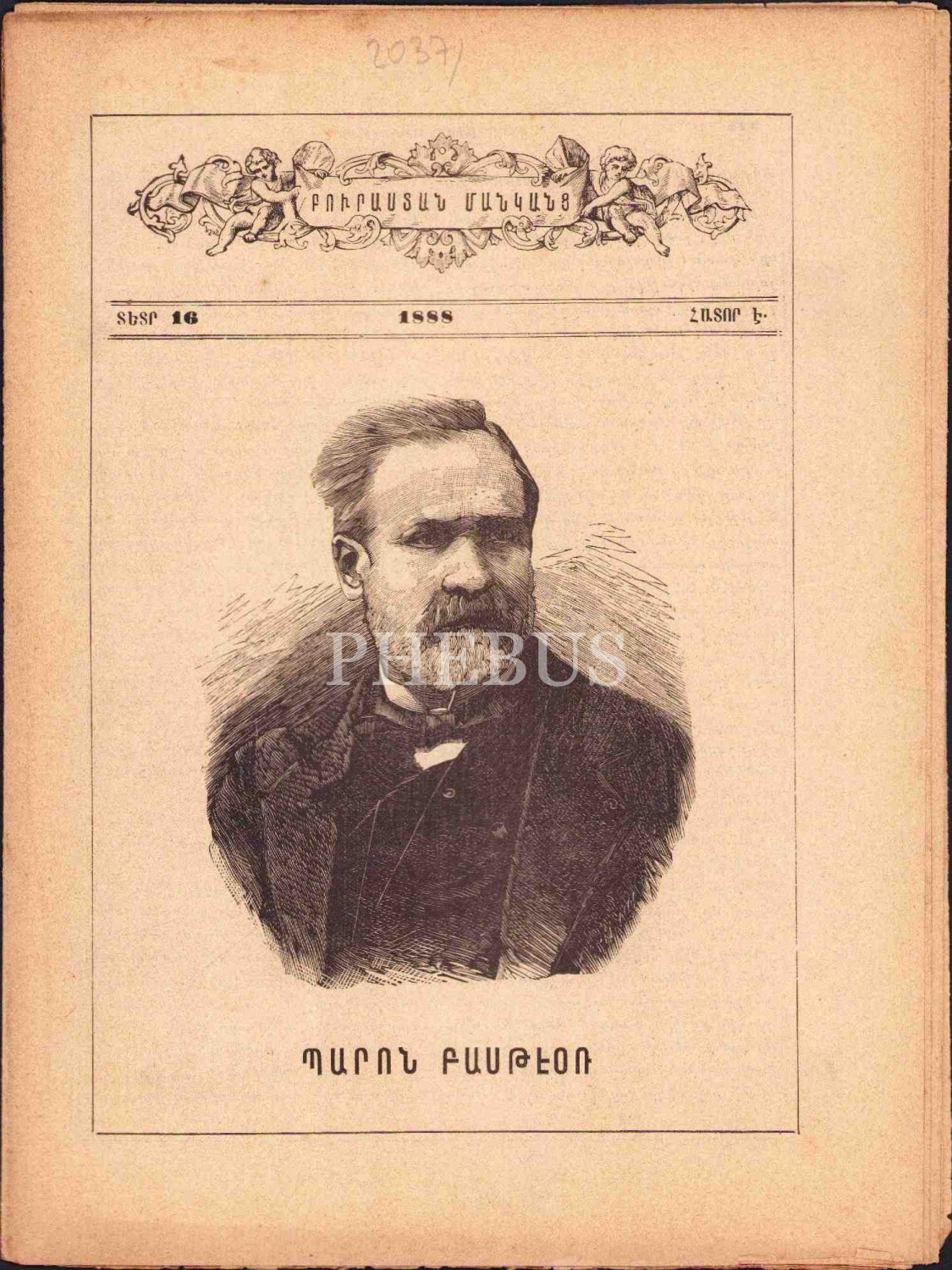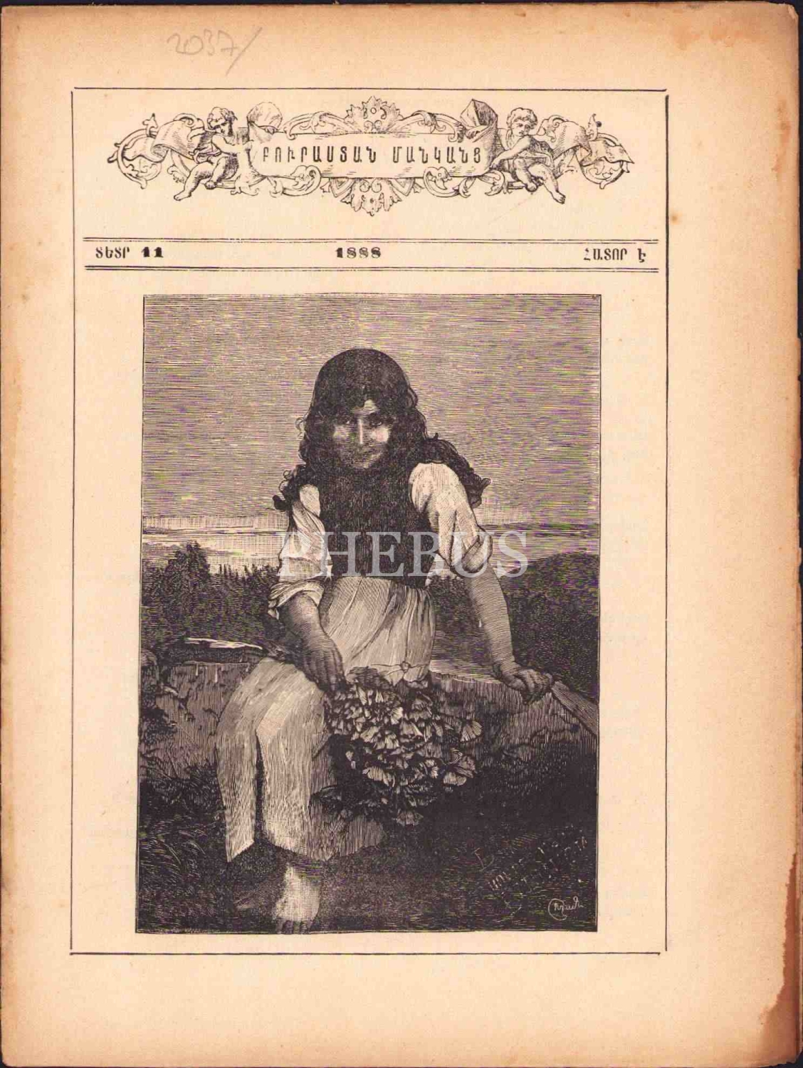 Çeşitlli Sayılara Ait 14 Adet Ermenice Çocukların Güzel Kokular Bahçesi Mecmuası [Purasdan Mangants], Nışan Berberyan Matbaası, İstanbul - 1888, 19x26 cm
