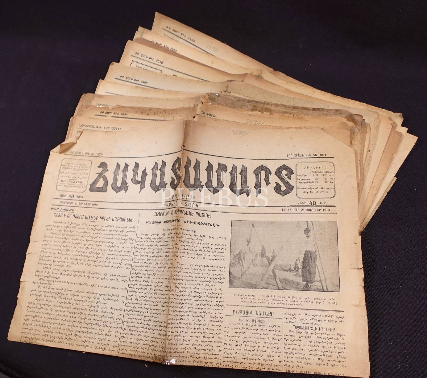1919-1923 Yıllarına Ait 10 Adet Ermenice Muharebe Gazetesi [Cagadamard Oratert], 1919-1923, 45x58 cm