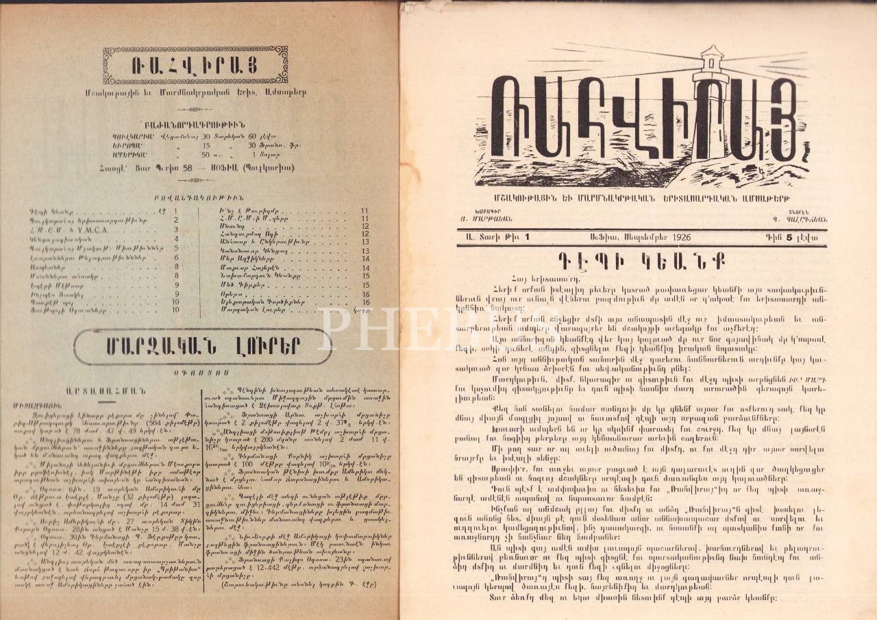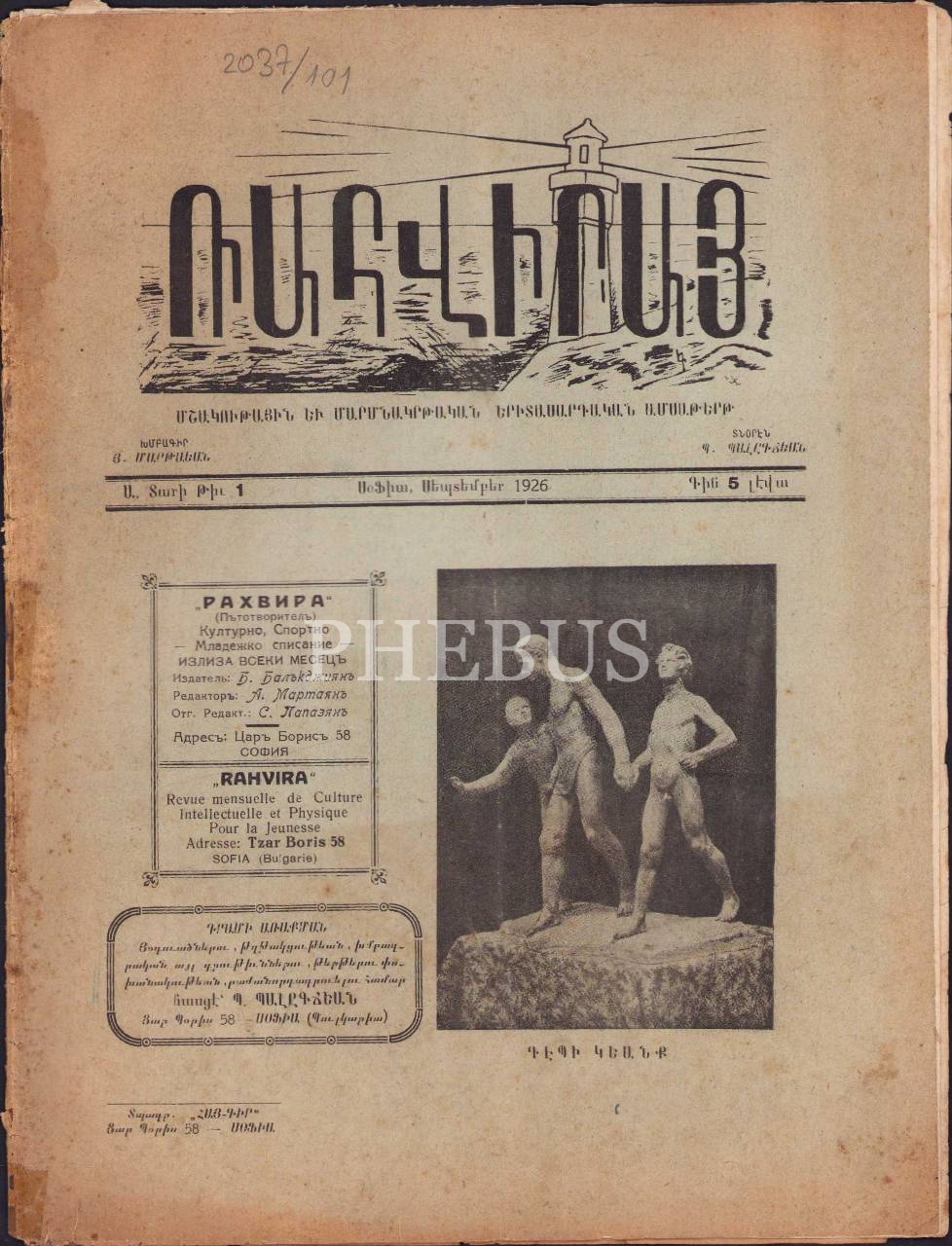 Ermenice Rahvira Mecmuası, 1. sene, 1. sayı, Hay Kir Matbaası, Sofya - 1926, 16 sayfa, 24x32 cm