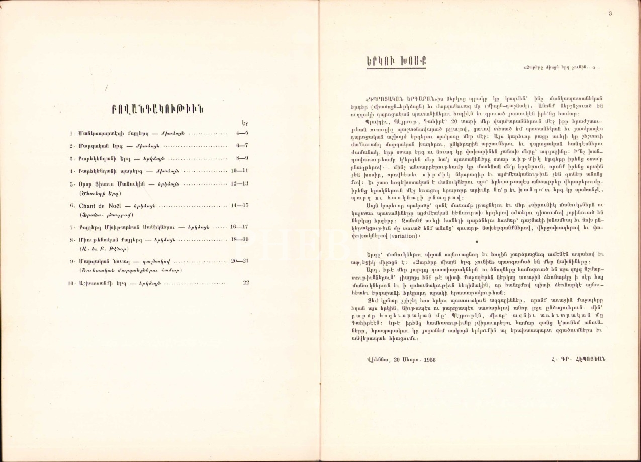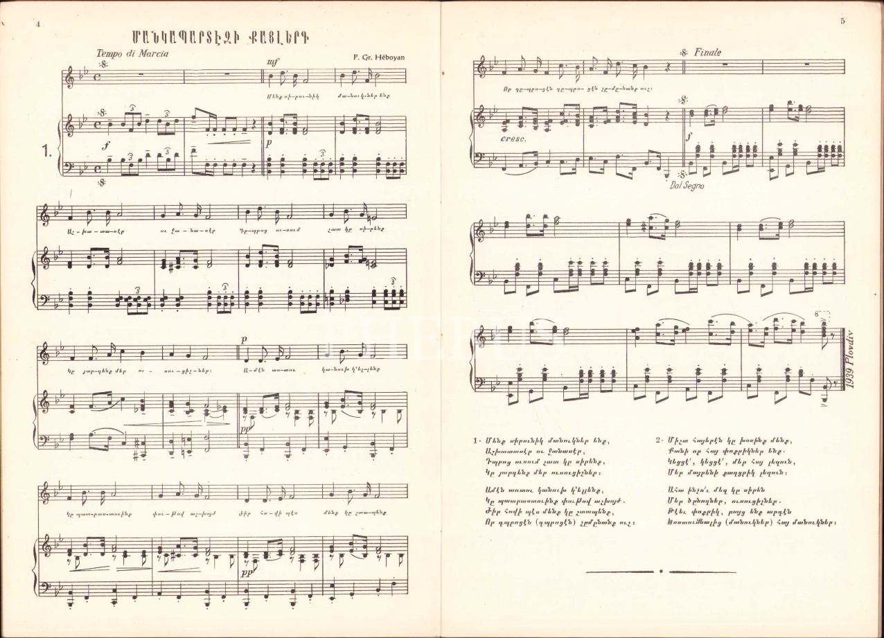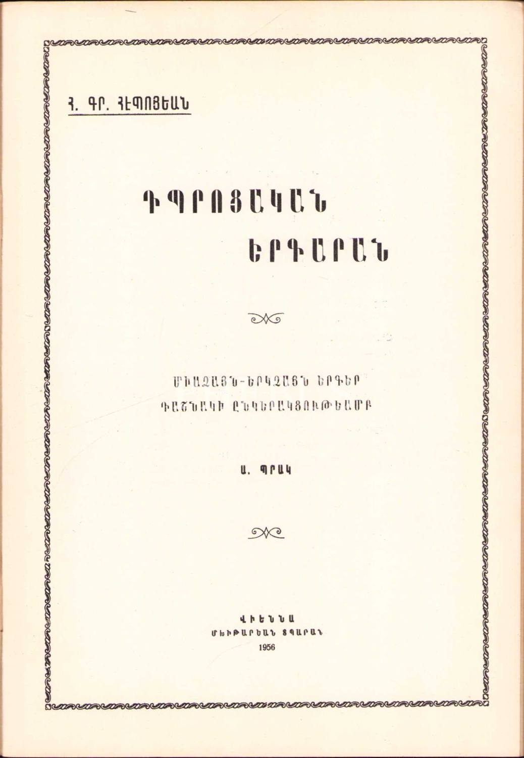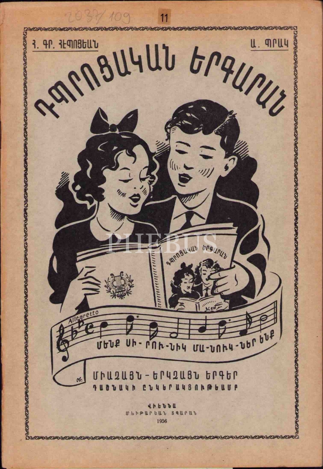 Ermenice Çocuklar İçin Nota kitabı: Okul Şarkıları, 1. Fasikül [Tıbrotsagan Yerker], Krikor Heboyan, Mıhitaryan Matbaası, Viyana - 1956 Baskı, 22 sayfa, 19x27 cm