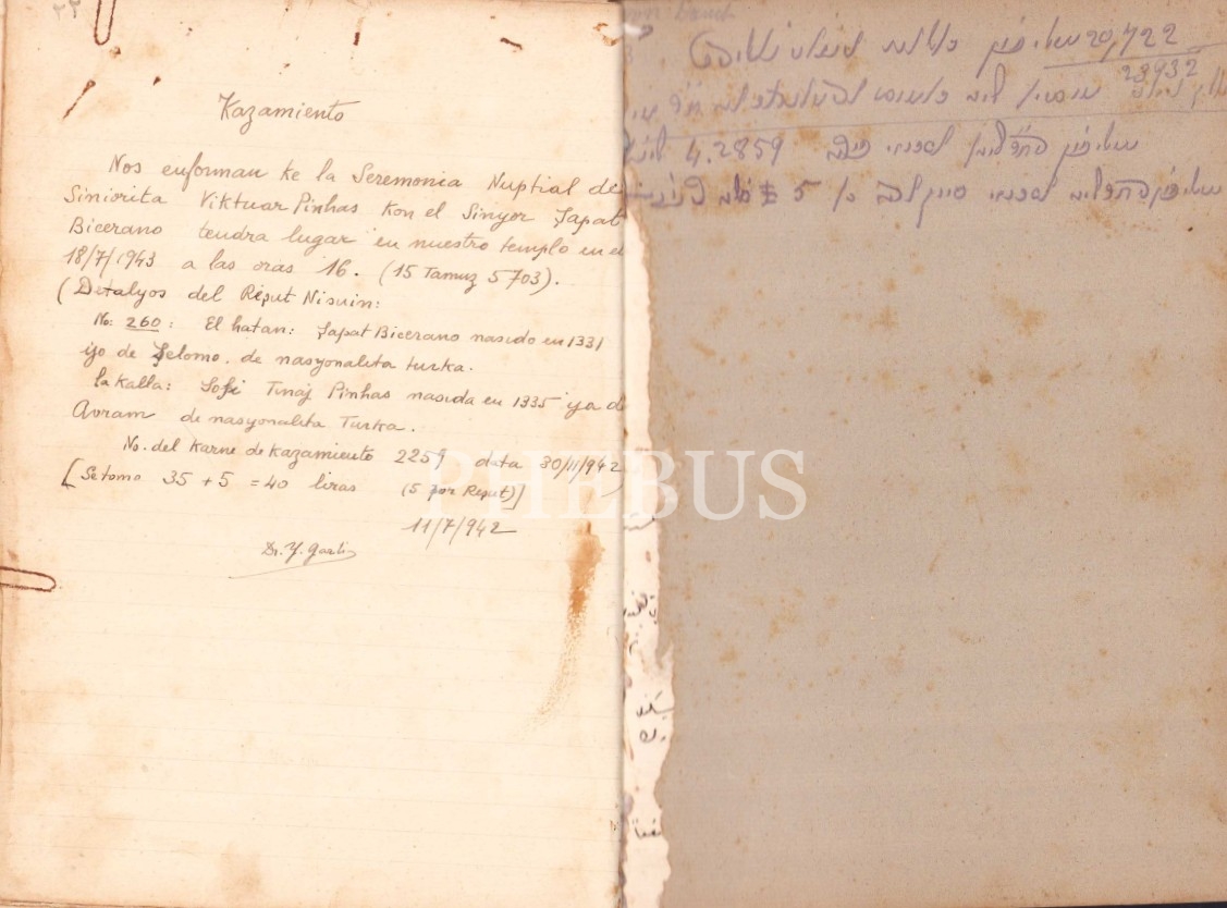 İçi Fransızca ve İbranice Metinler ile Başlayarak İleri sayfaları Ladino ile Yazılmıştır. Sinyor Jak Kamhi, Reina Hija de Salamon, Sinyor Hayim Kohen, Sinyor Yuda Kale Alaton. Karton Cildinde Sırtı Yorgun