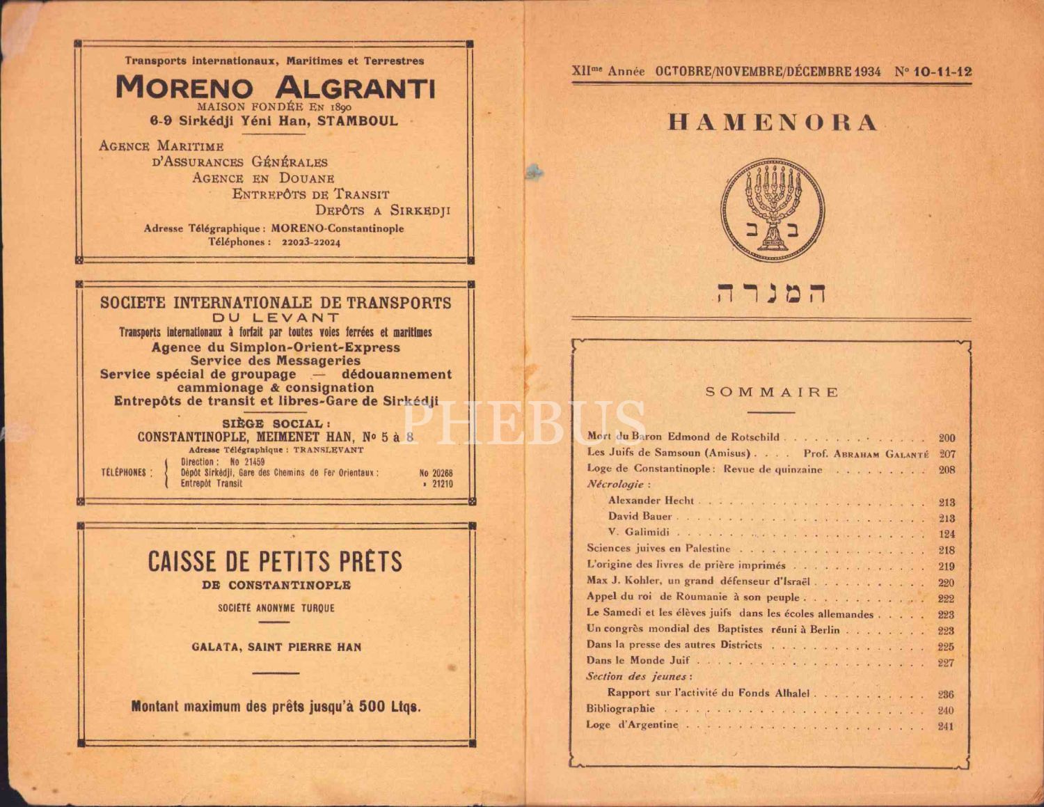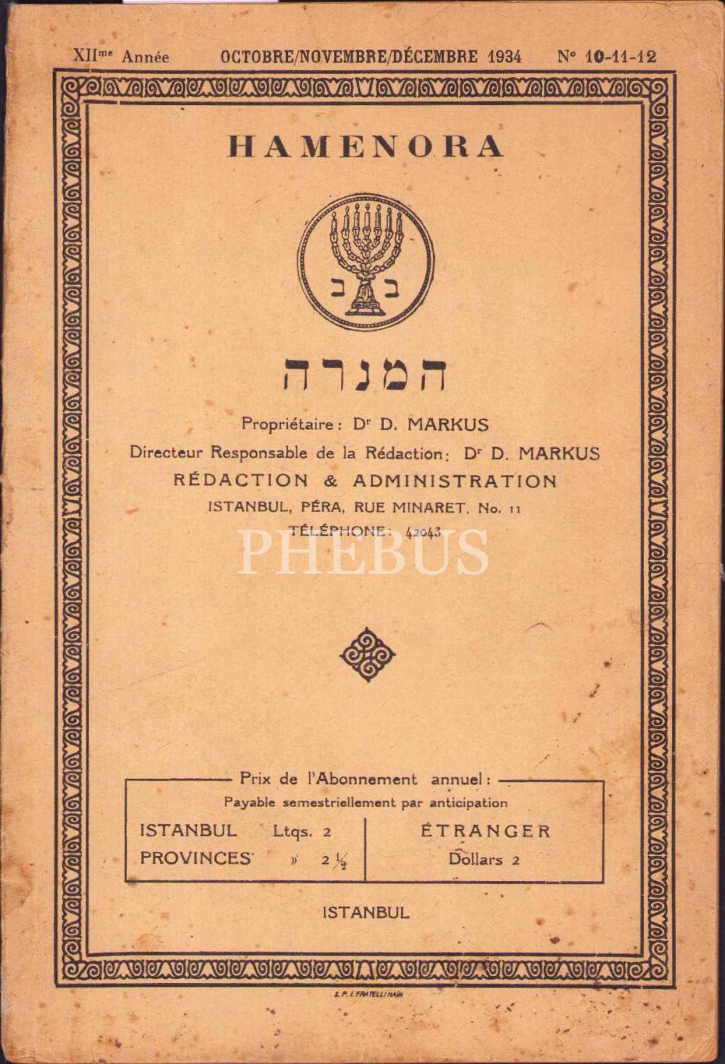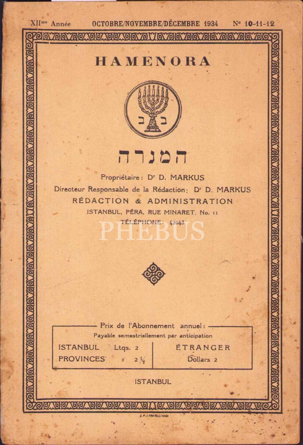 French ''Hamenora'' journal year 12 issues 10-11-12, İstanbul Pera 1934