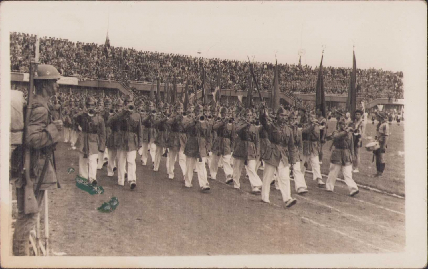 Harp Okulu Boru Takımı tören geçişinde, 1948 tarihli, 14x8,5cm