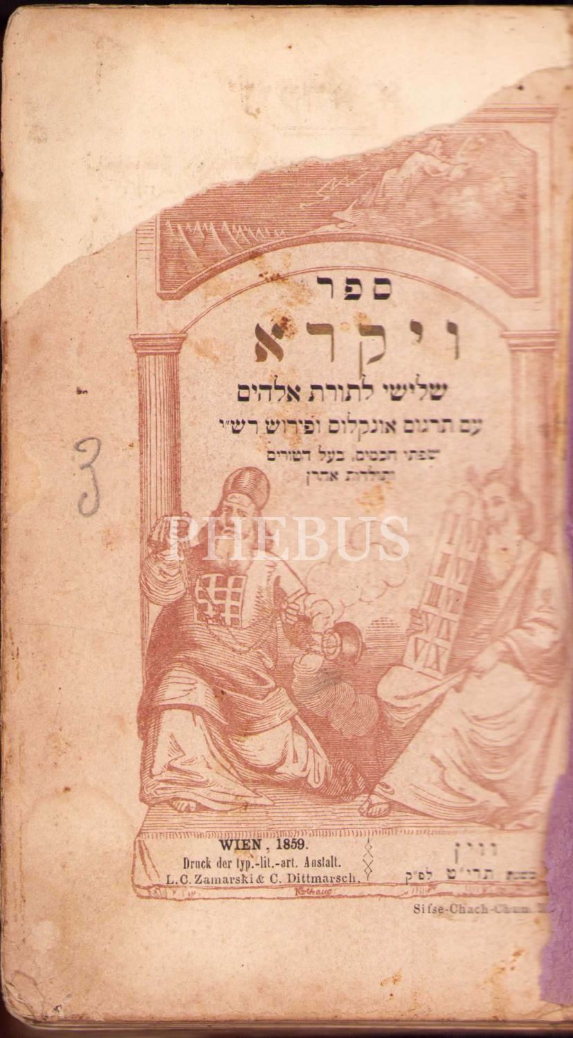 İbranice Kitap, Tevrat 3. Kısım, Vayikra (וַיִּקְרָא ) Viyana 1859 Baskı, 12x18 cm